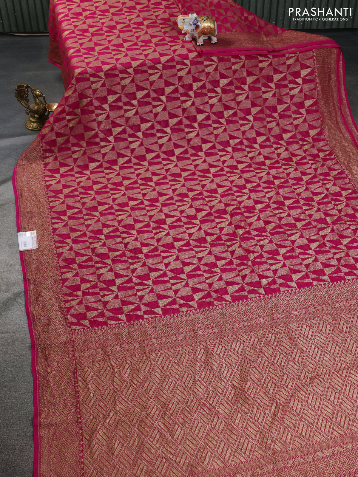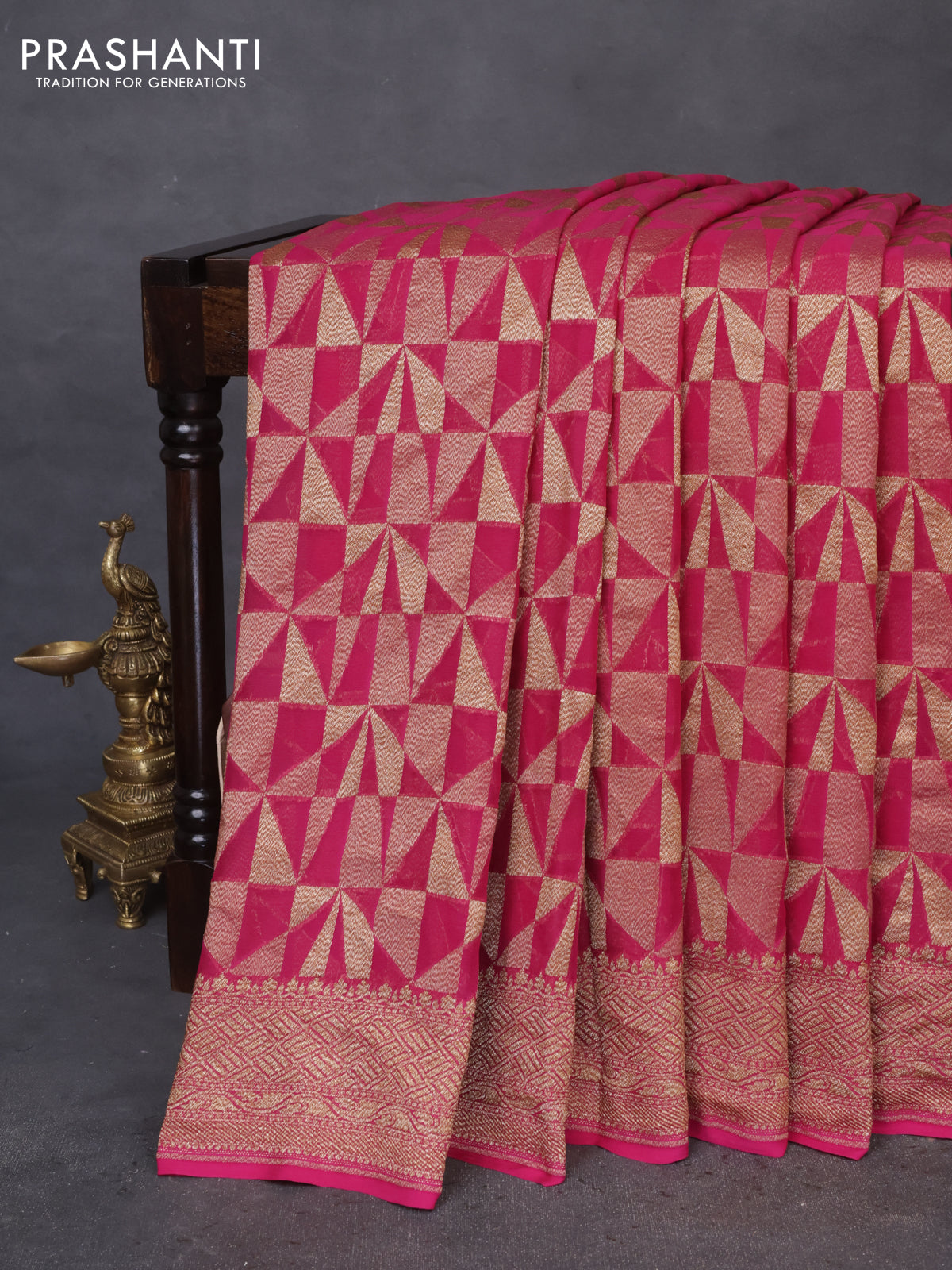 Banarasi georgette saree pink with allover thread & zari geometric weaves and woven border