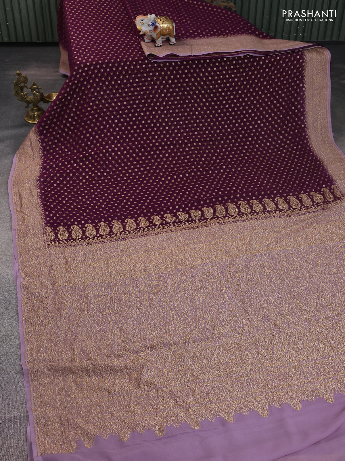 Banarasi georgette saree purple and pastel pink with allover woven buttas and woven border