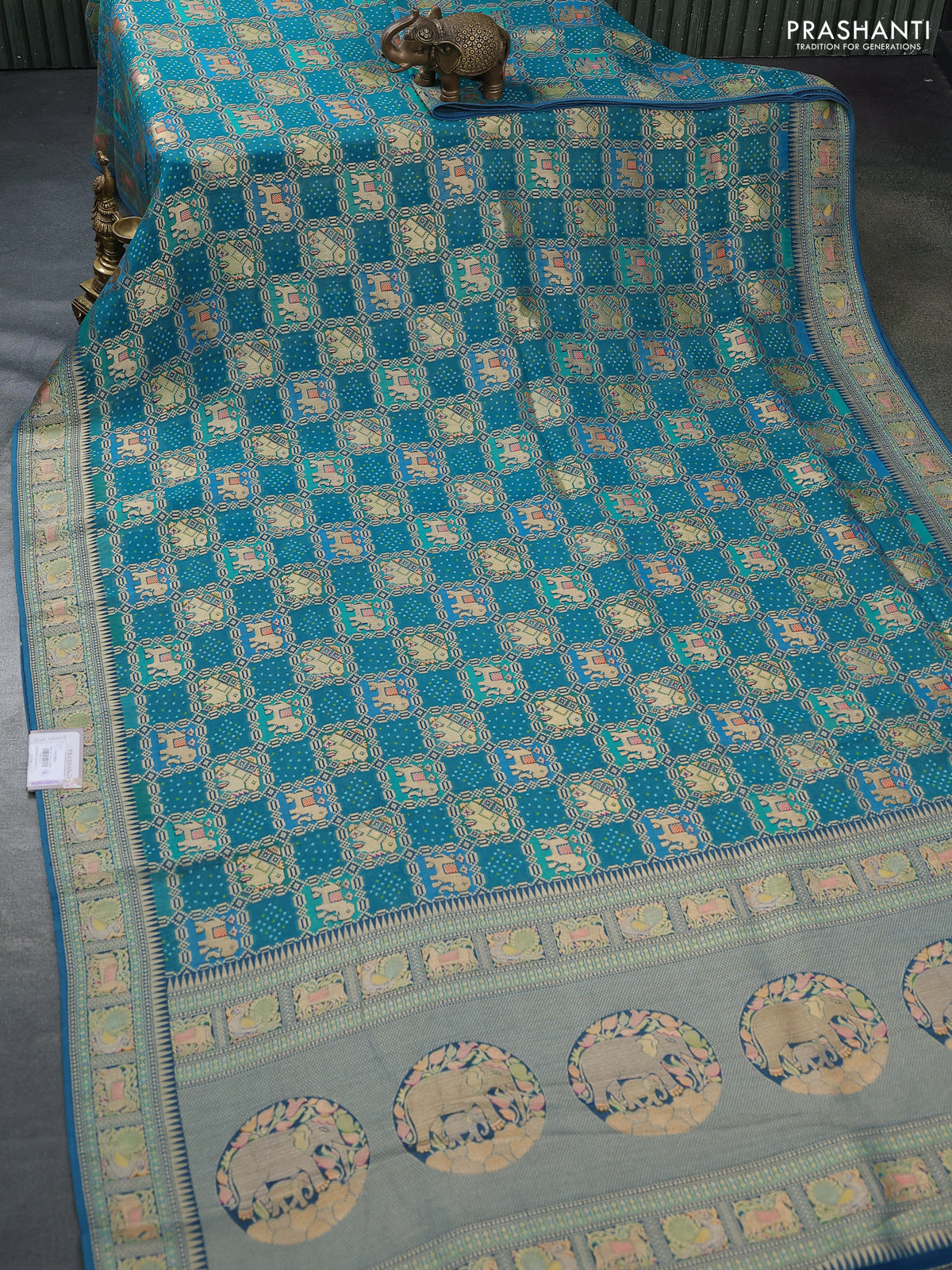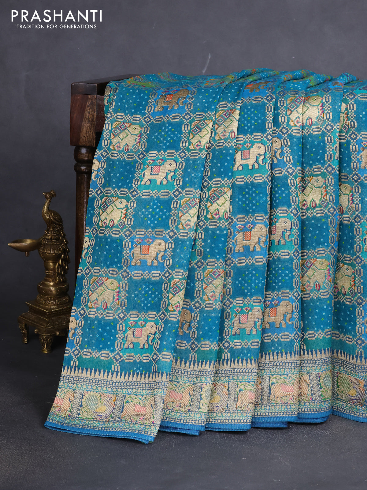 Banarasi georgette saree teal blue with bandhani prints & mina weaves