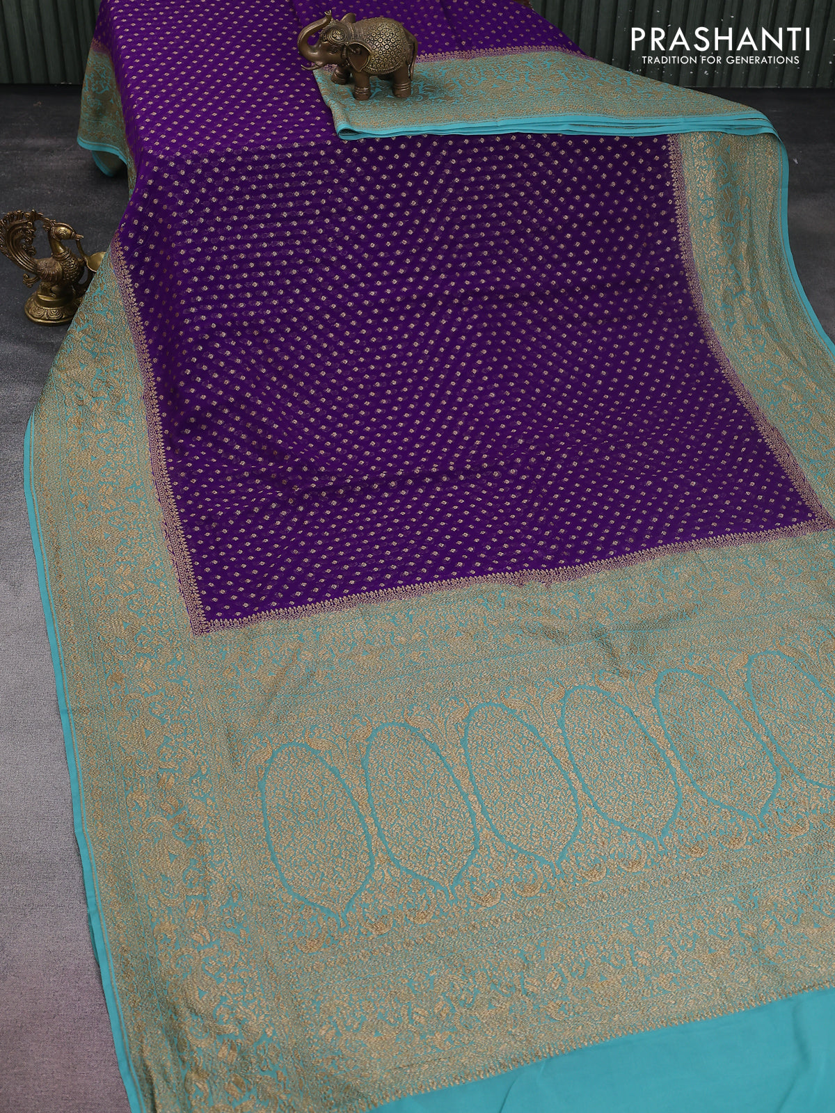 Banarasi georgette saree violet and teal blue with allover thread & zari woven butta weaves and woven border