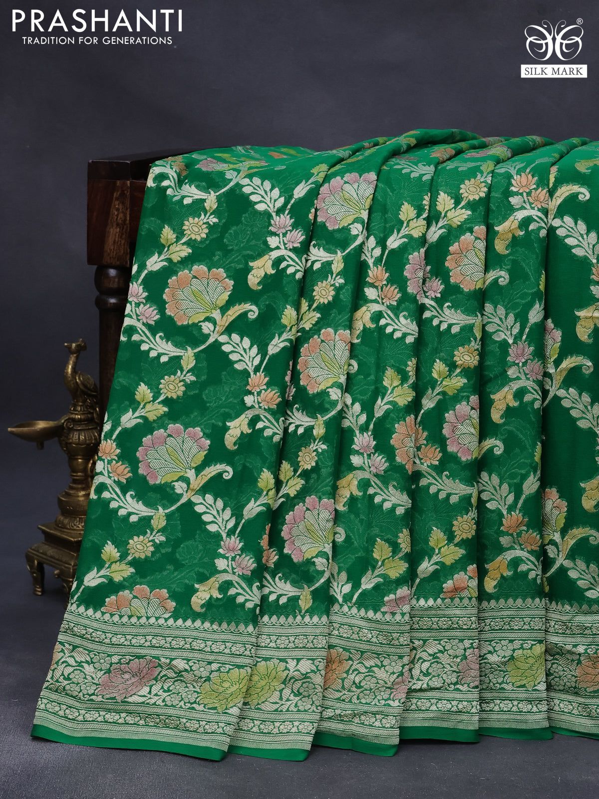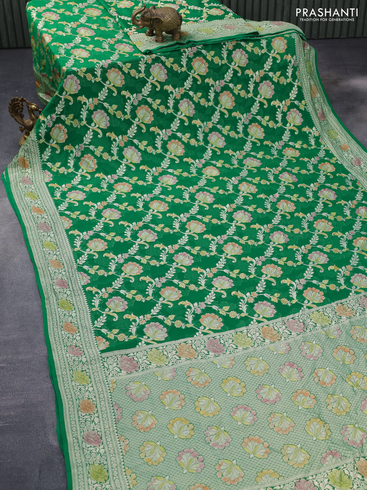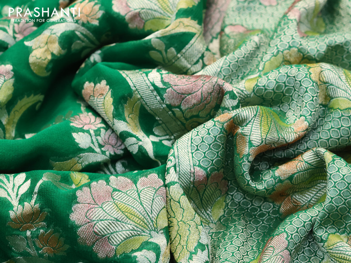 Banarasi georgette silk saree green with allover thread & zari floral weaves and woven border