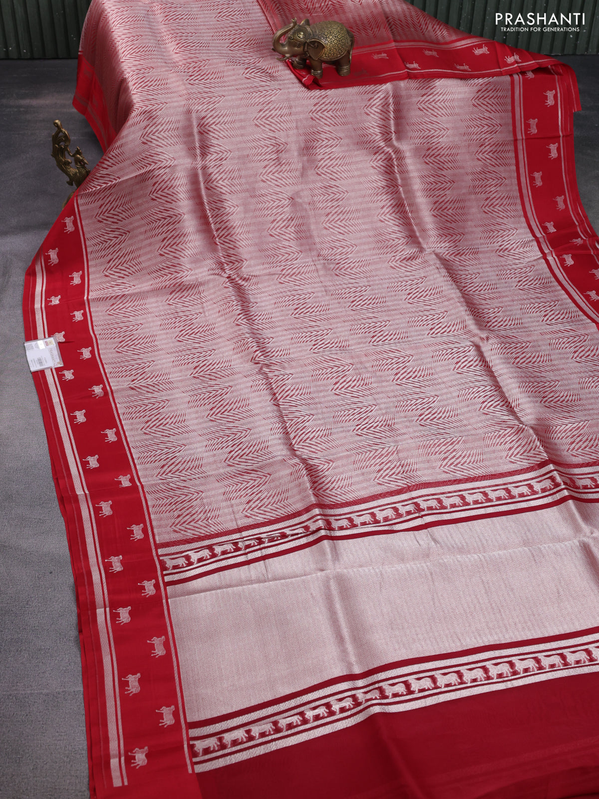 Banarasi katan silk saree red with allover silver zari woven brocade weaves and zari woven butta border