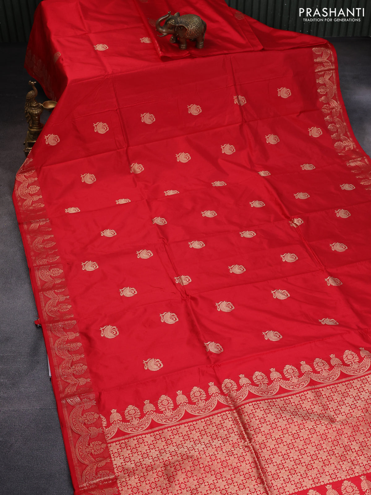 Banarasi katan silk saree red with zari woven buttas and zari woven border