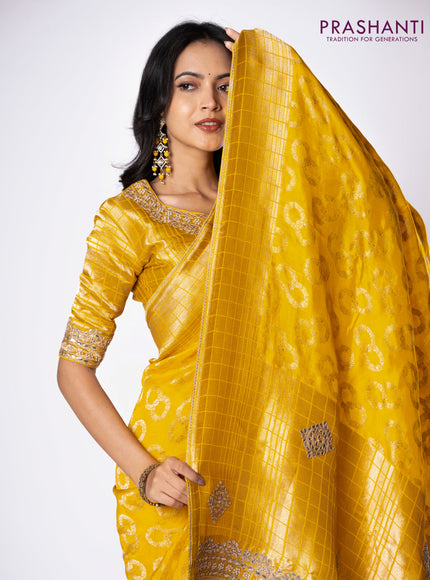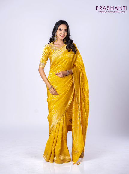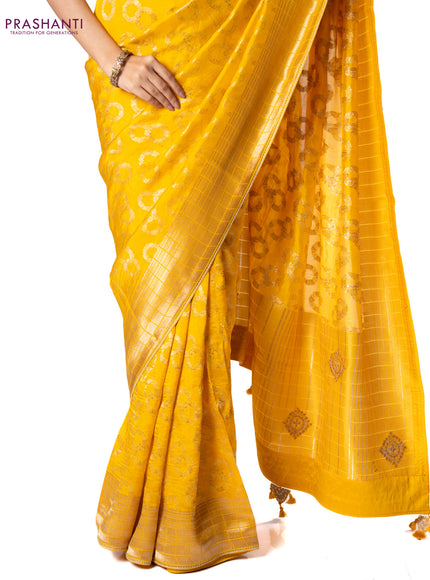 Banarasi munga silk saree yellow with allover silver & gold zari weaves and zari woven lace border