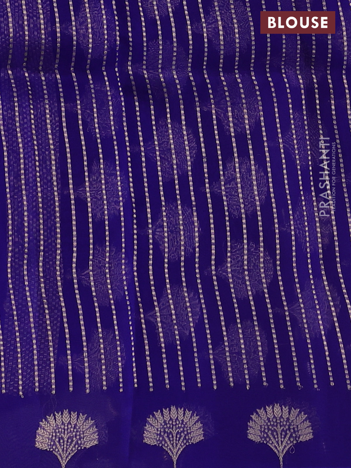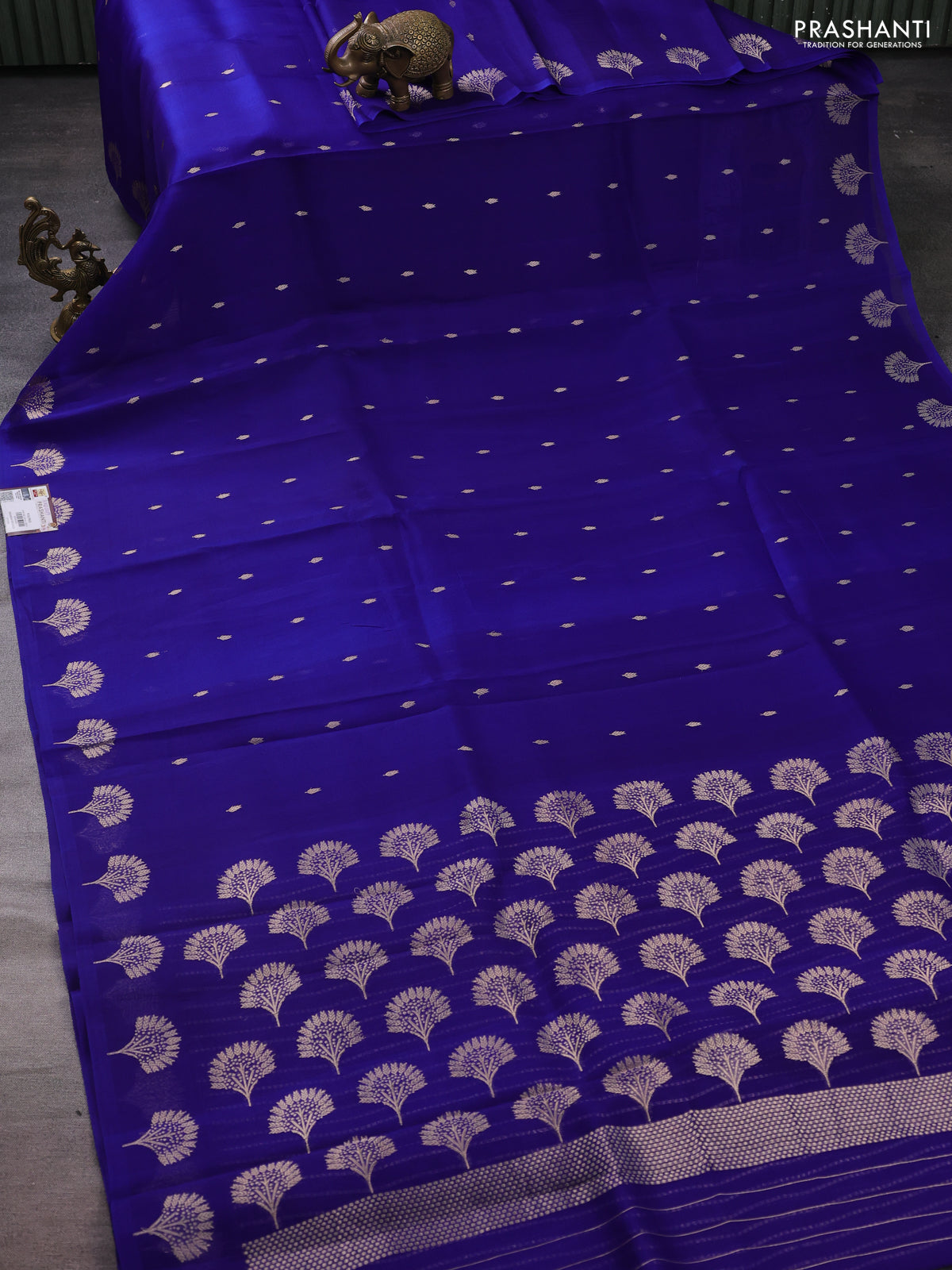 Banarasi organza silk saree blue with zari woven floral buttas and zari woven butta border
