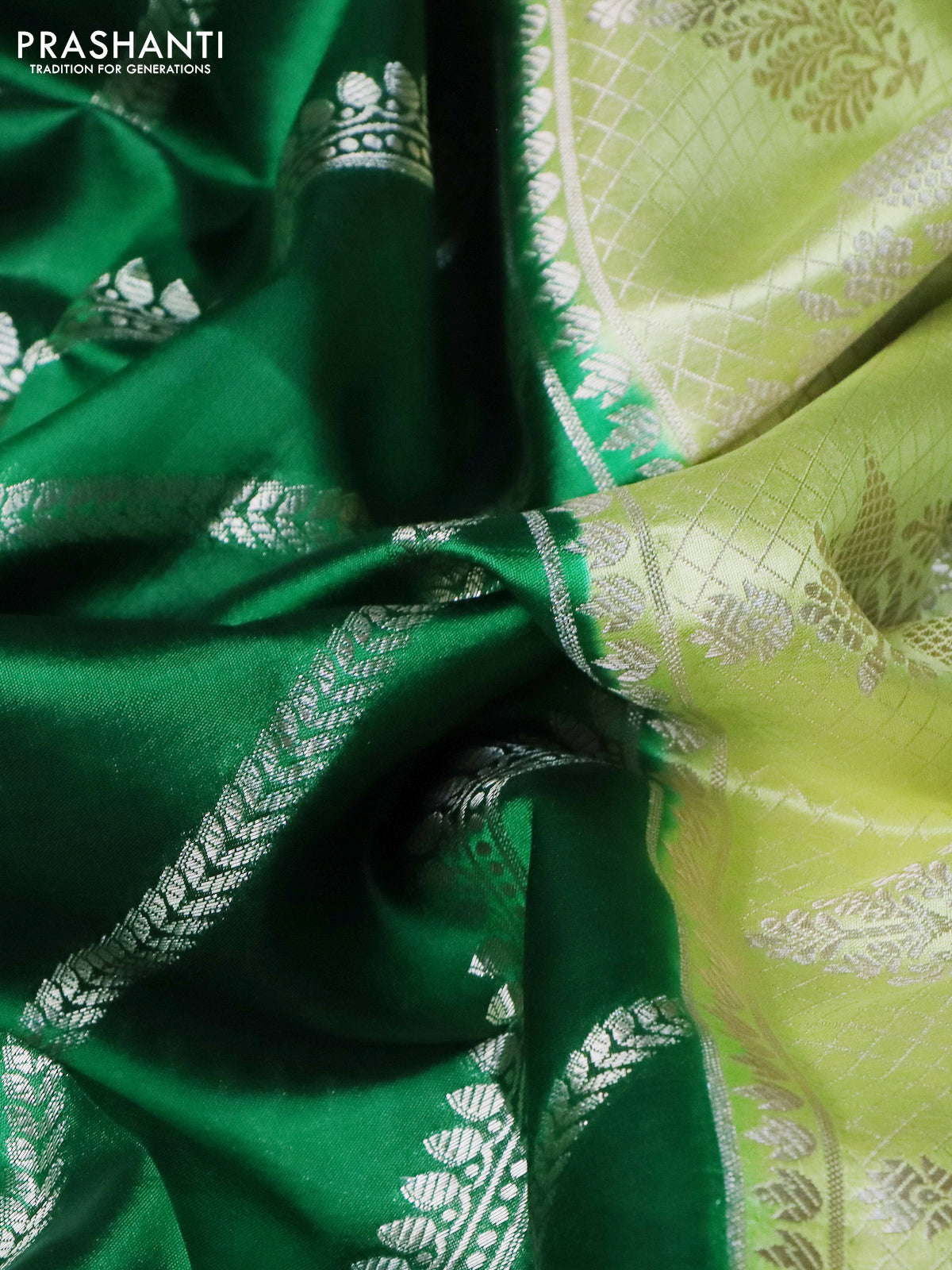Banarasi poona silk saree green and light green with allover zari weaves and zari woven border