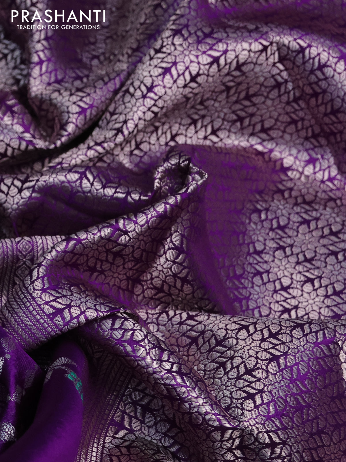 Banarasi poona silk saree violet with allover silver zari woven brocade weaves and zari woven border