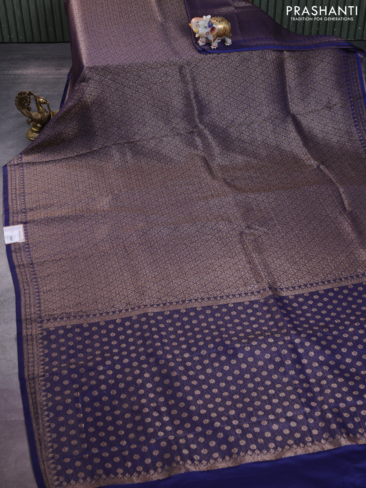 Banarasi semi crepe saree blue with allover thread & zari woven brocade weaves and woven border