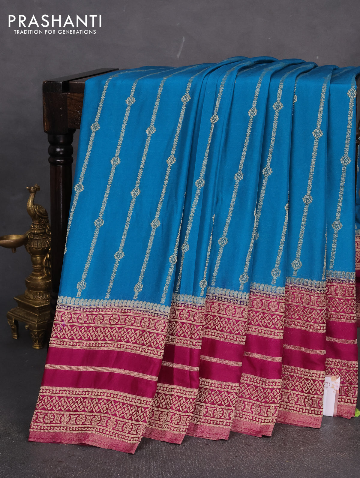 Banarasi semi crepe saree cs blue and purple with allover zari weaves and zari woven border