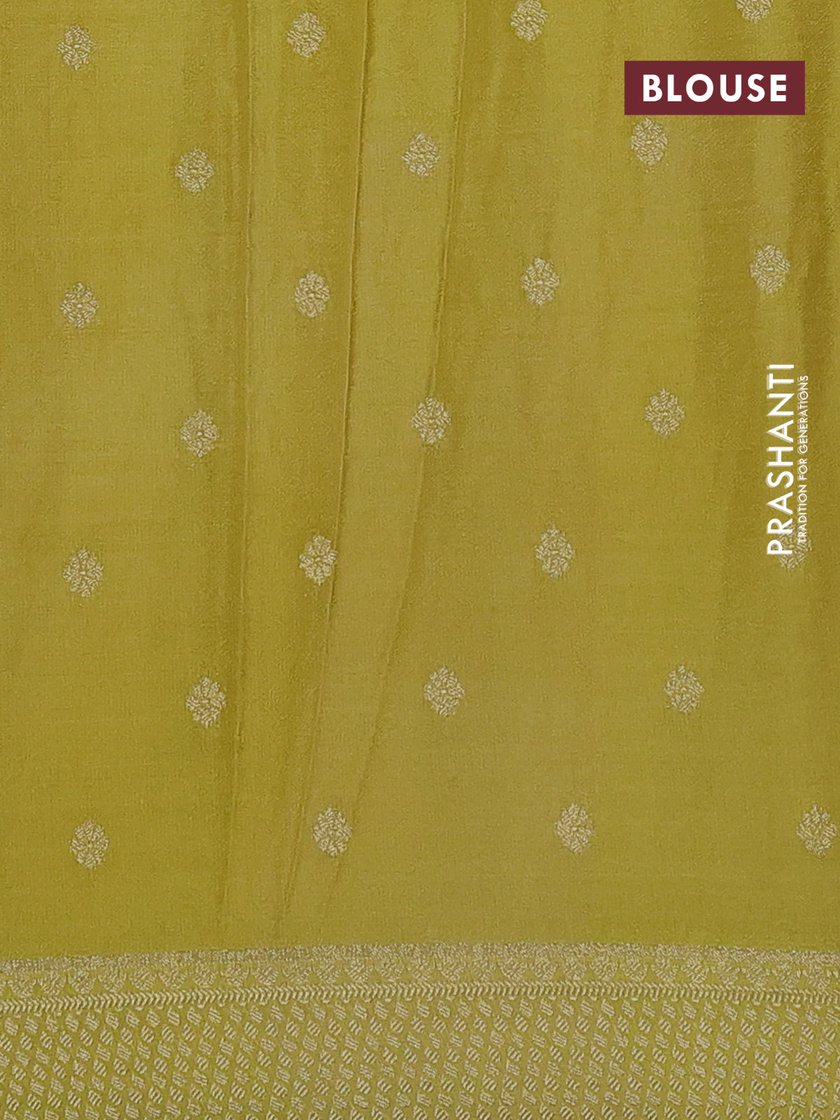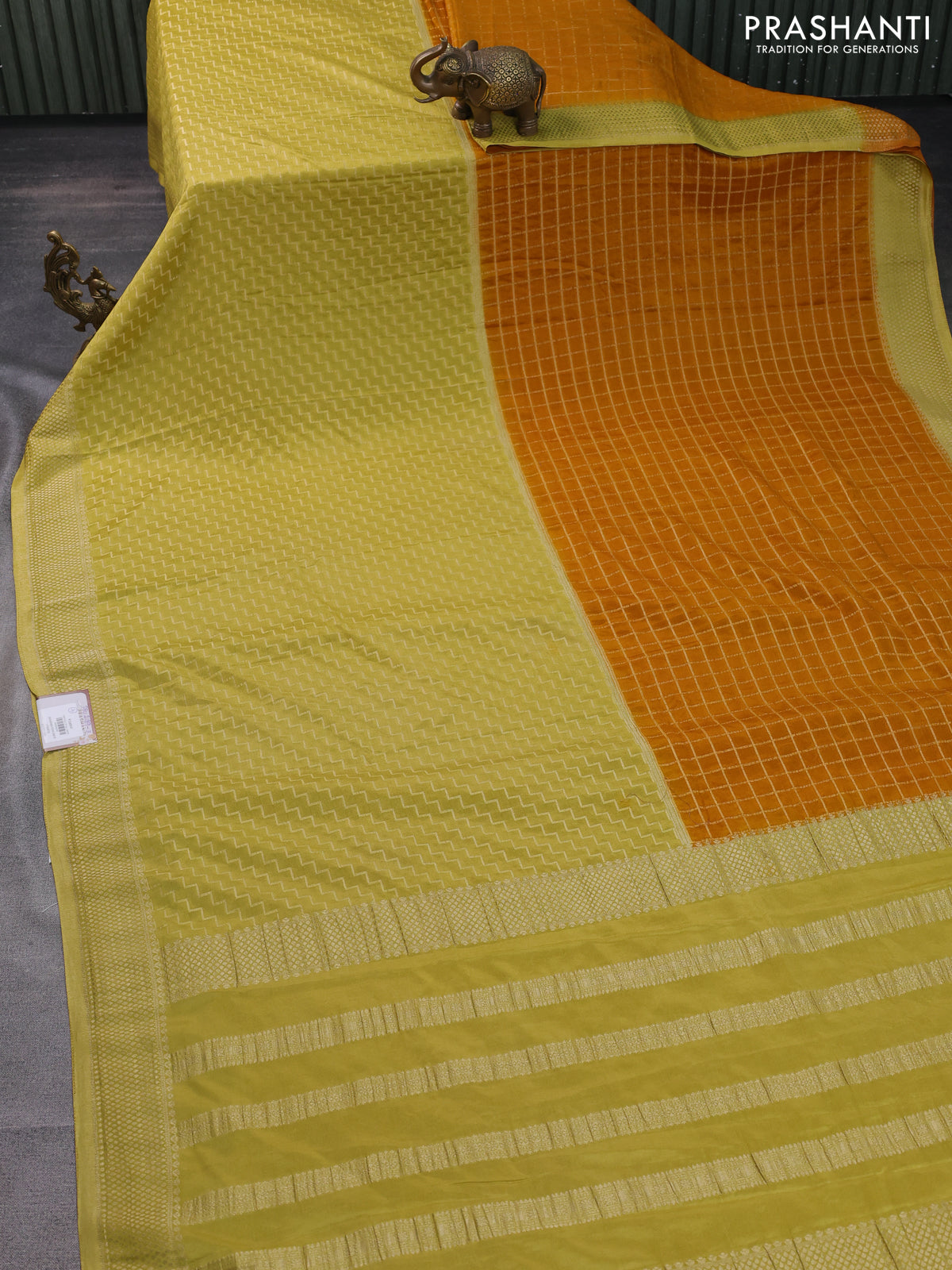 Banarasi semi crepe saree dark mustard and lime yellow with half & half style and zari woven border