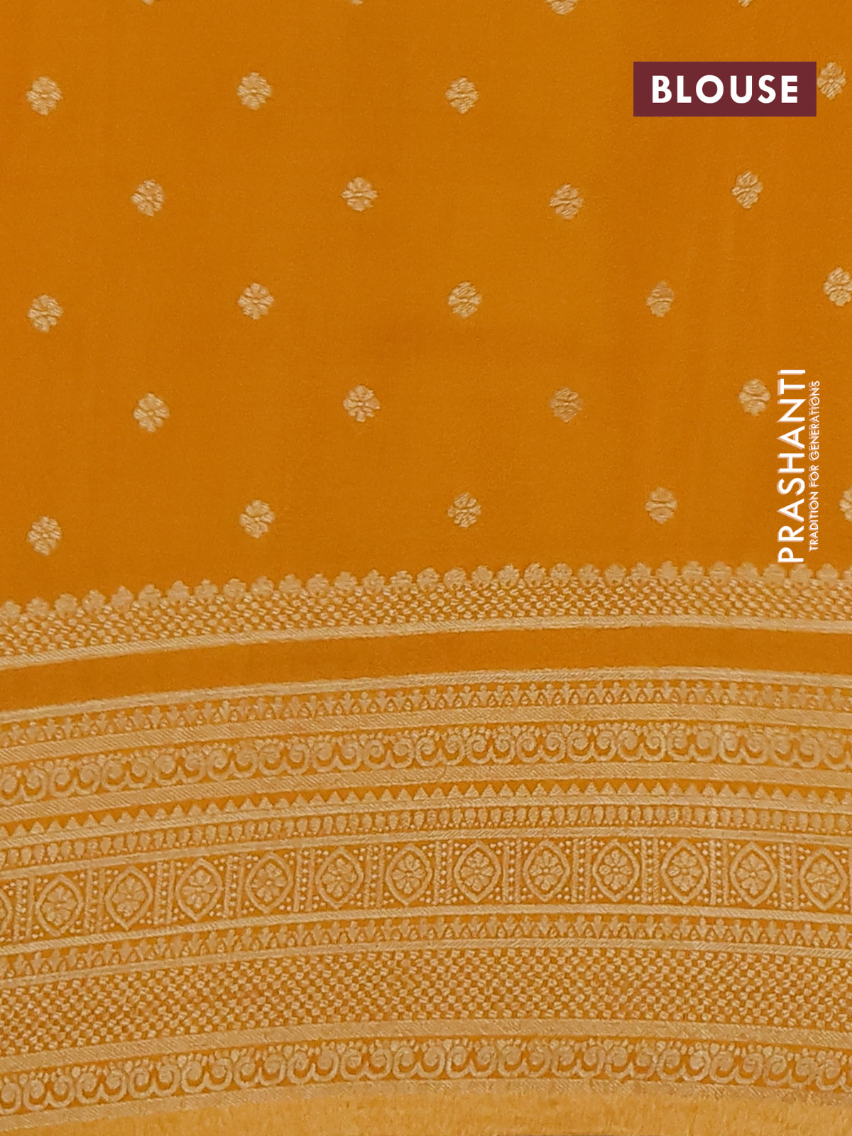 Banarasi semi crepe saree maroon and mango yellow with allover zari woven butta weaves and long zari woven border