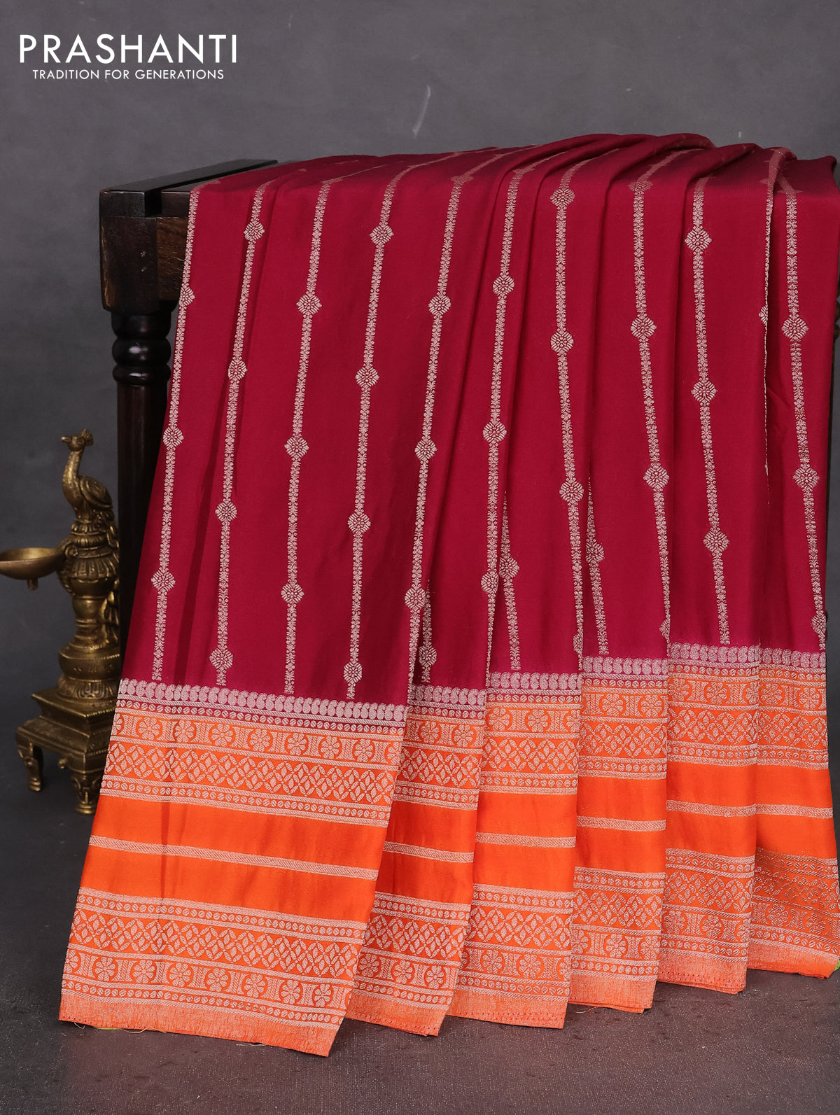 Banarasi semi crepe saree maroon and orange with allover zari weaves and zari woven border