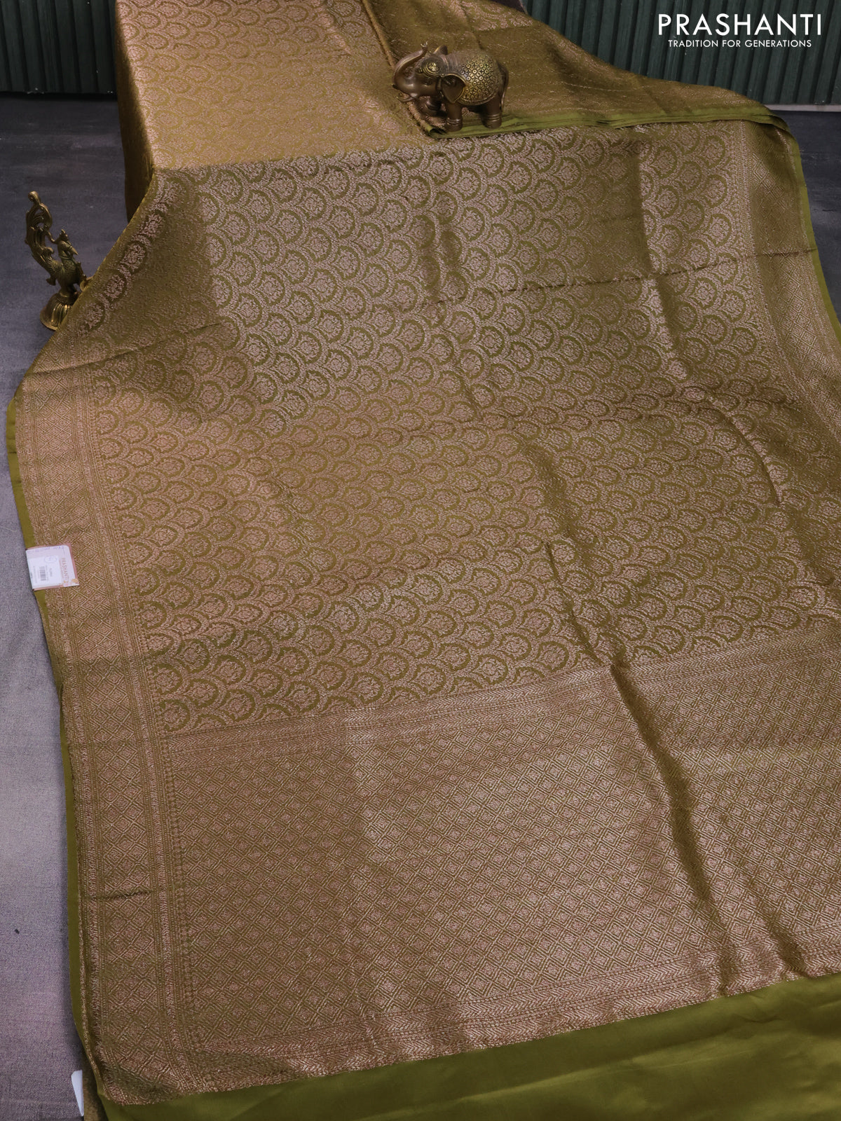 Banarasi semi crepe saree mehendi green with allover thread & zari woven brocade weaves and woven border