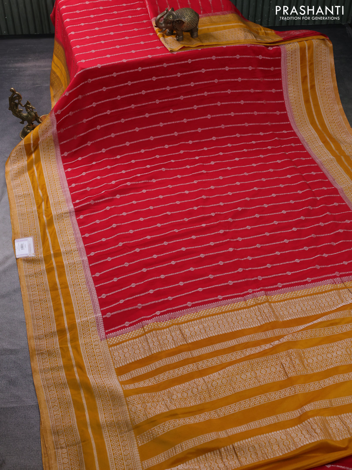 Banarasi semi crepe saree red and mustard yellow with allover zari weaves and zari woven border