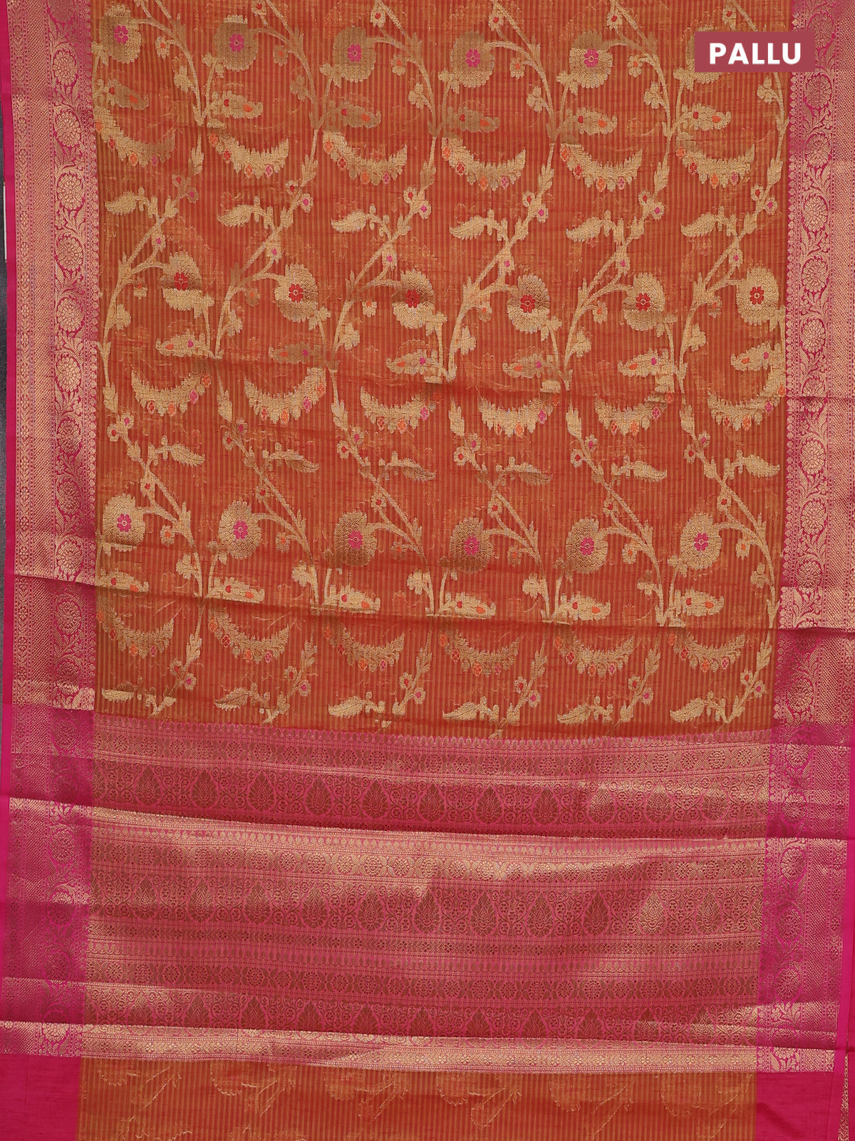 Banarasi semi dupion silk saree dual shade of dark mustard and pink with allover zari weaves and zari woven border