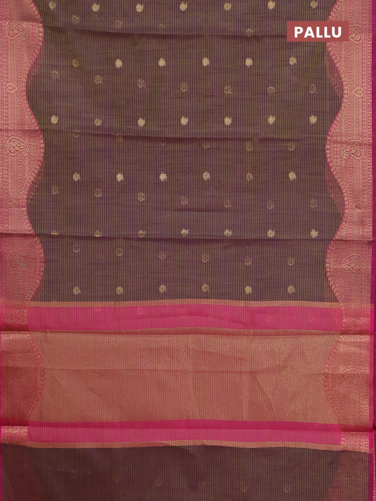 Banarasi semi dupion silk saree dual shade of greenish purple and pink with zari woven paisley buttas and zari woven border