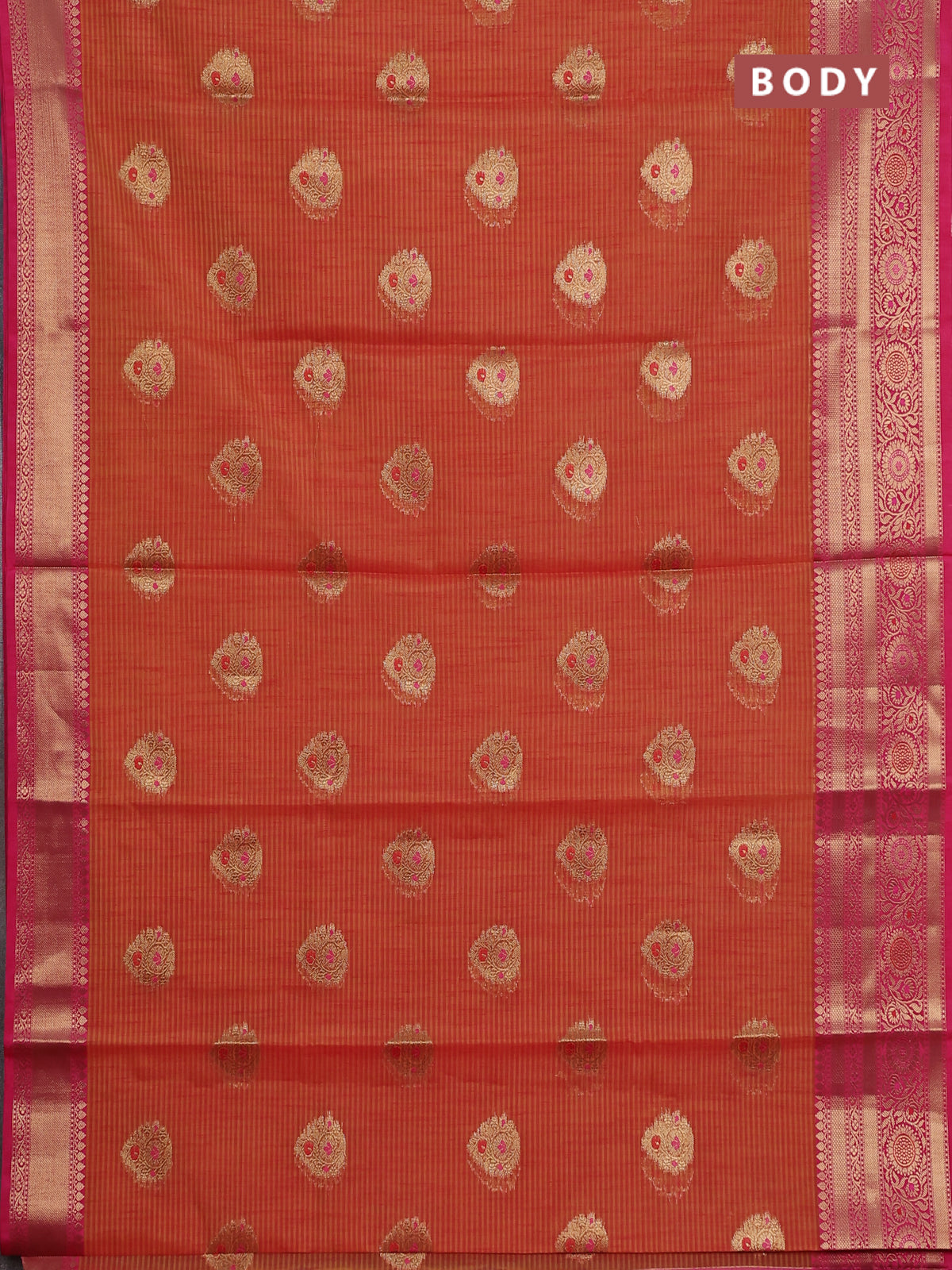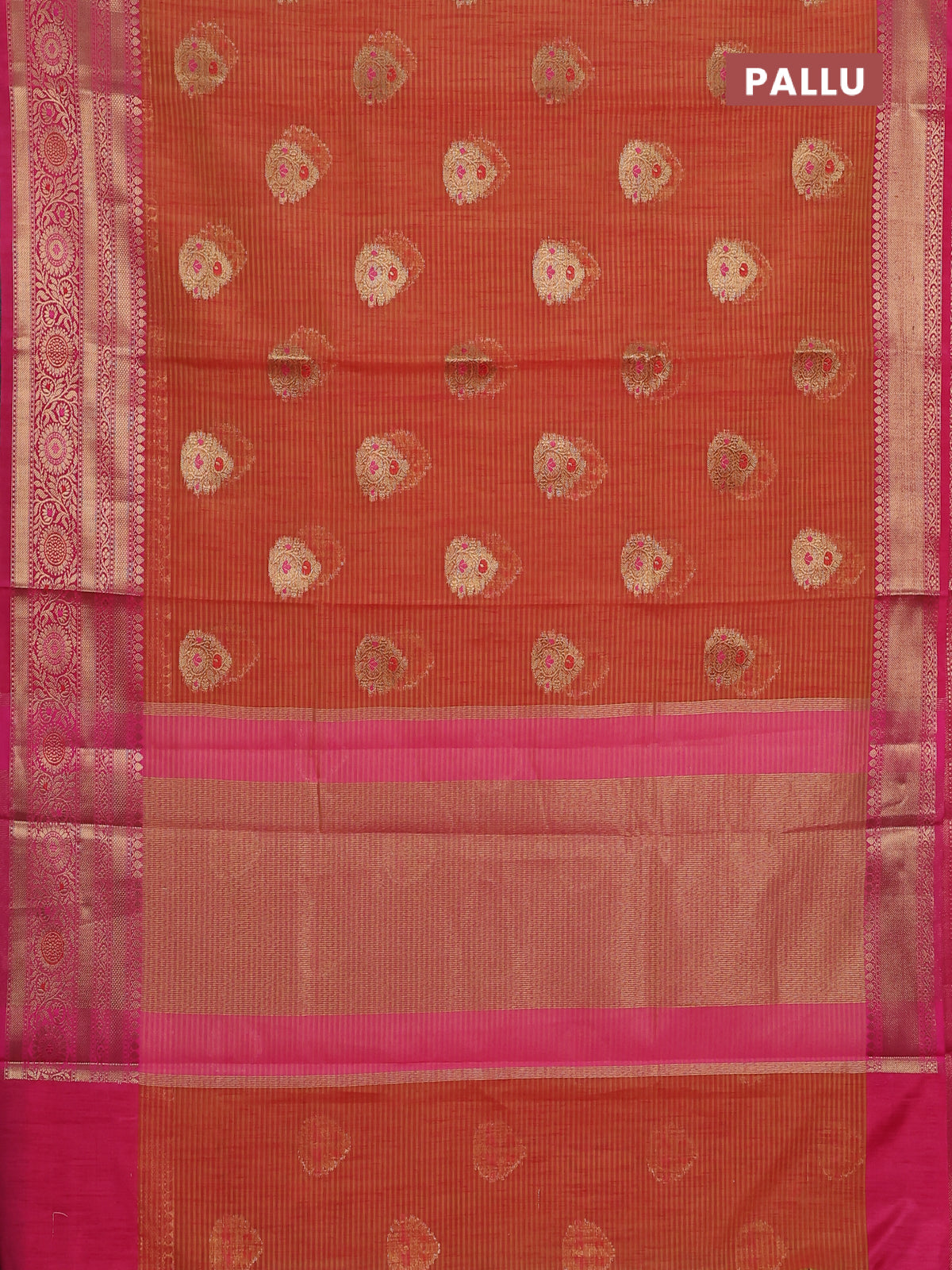 Banarasi semi dupion silk saree dual shade of sunset orange and pink with zari woven buttas and zari woven border