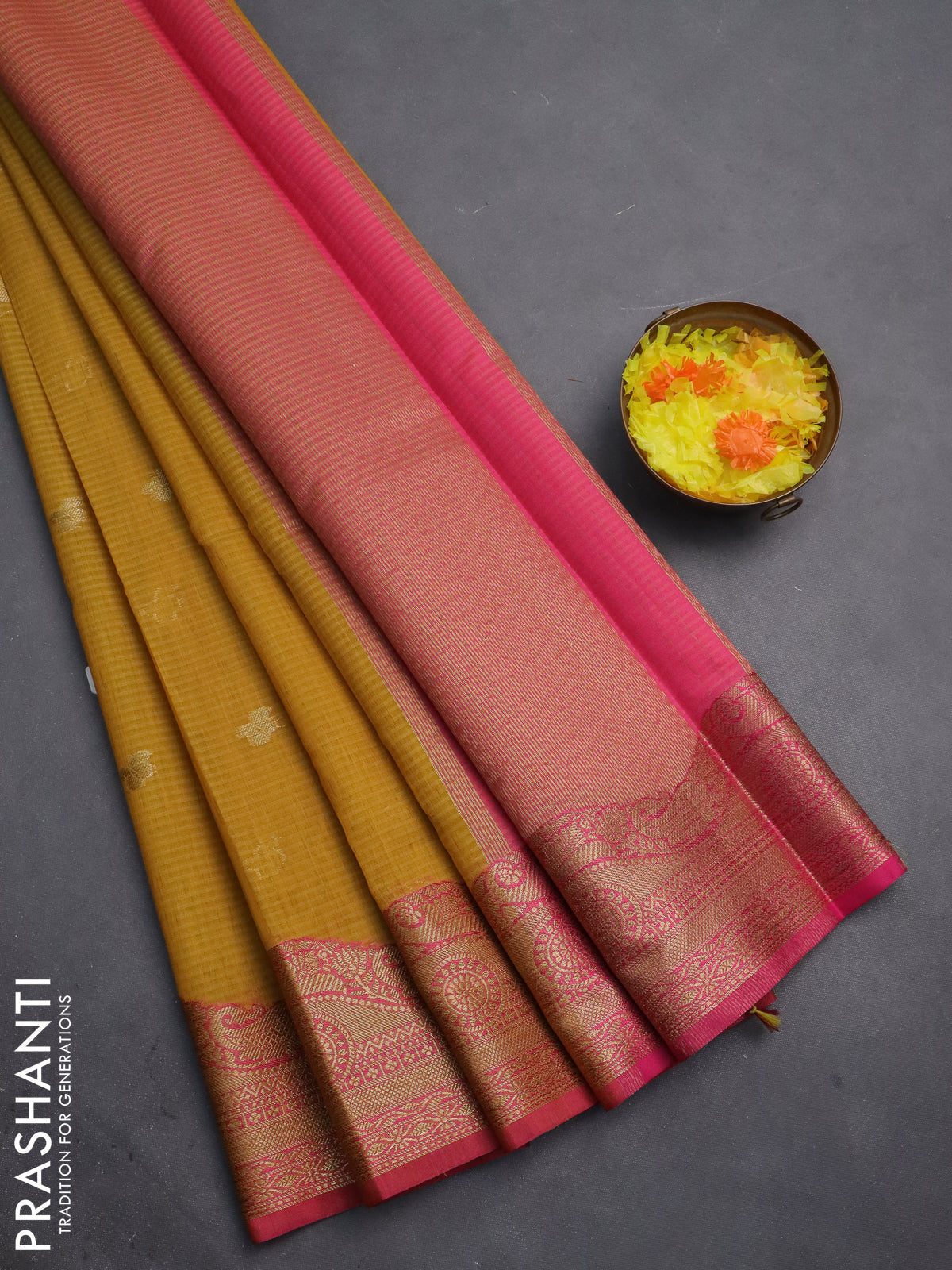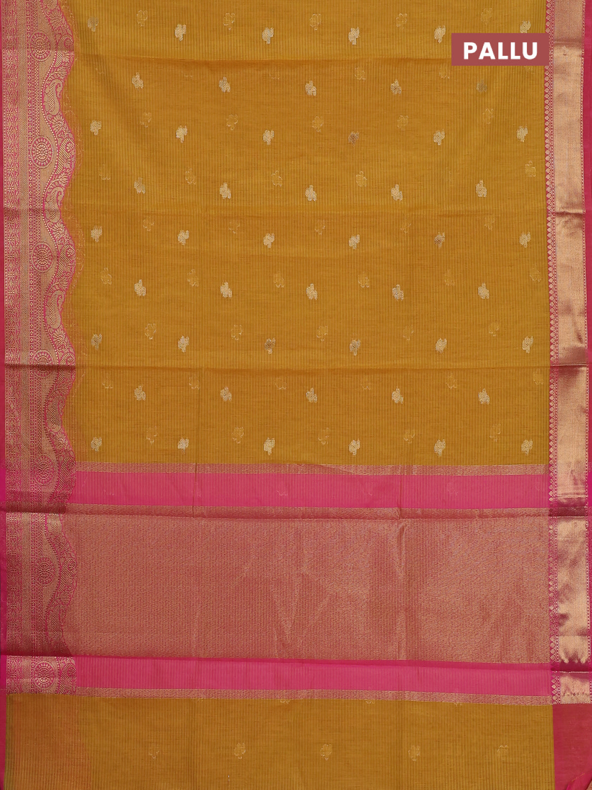 Banarasi semi dupion silk saree mustard yellow and pink with zari woven paisley buttas and zari woven border