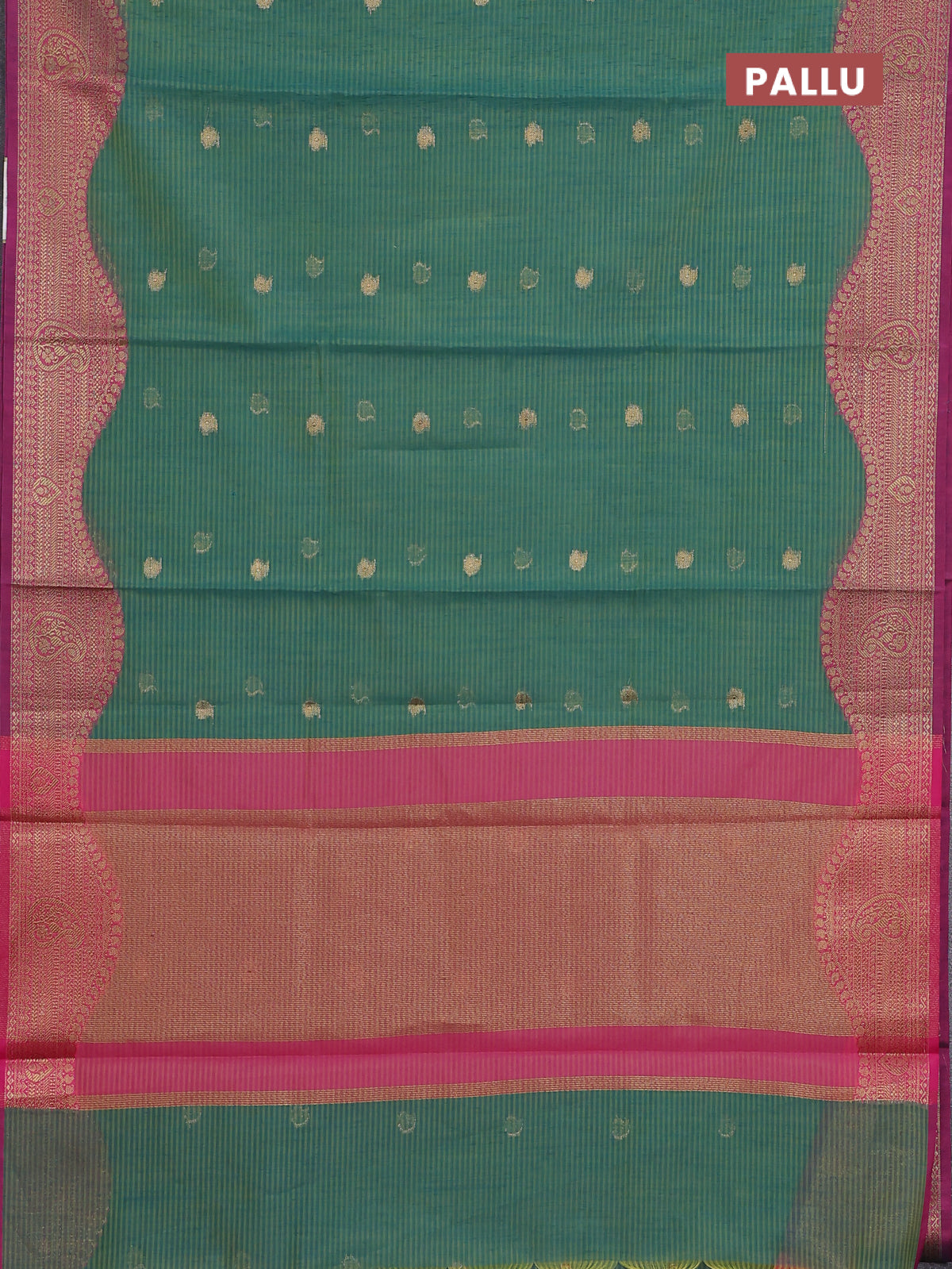 Banarasi semi dupion silk saree teal bluish green and pink with zari woven paisley buttas and zari woven border