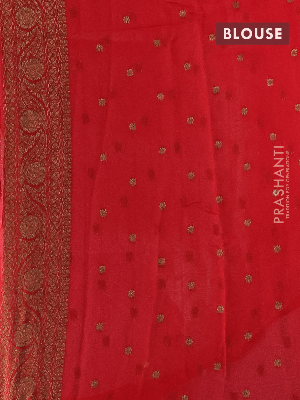 Banarasi semi georgette saree beige and red with allover thread & zari woven buttas and woven border