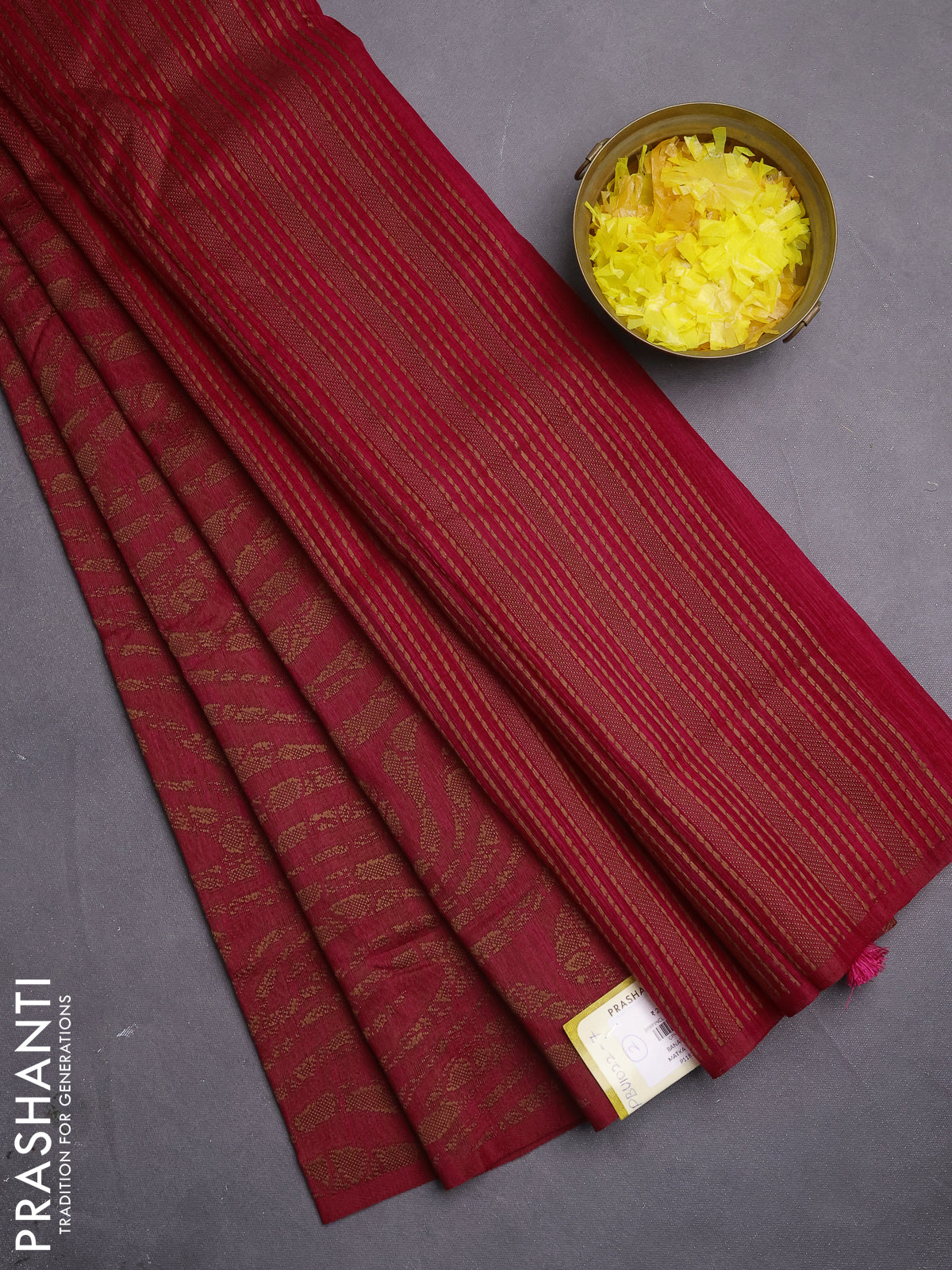 Banarasi semi matka saree dark pink with allover thread weaves in borderless style