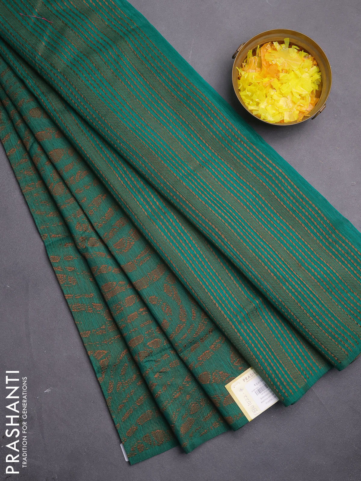 Banarasi semi matka saree green with allover thread weaves in borderless style