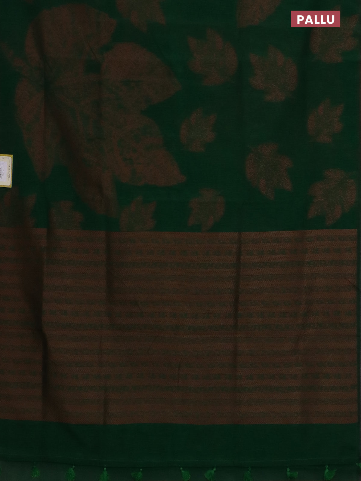 Banarasi semi matka saree green with allover thread woven leaf butta weaves in borderless style