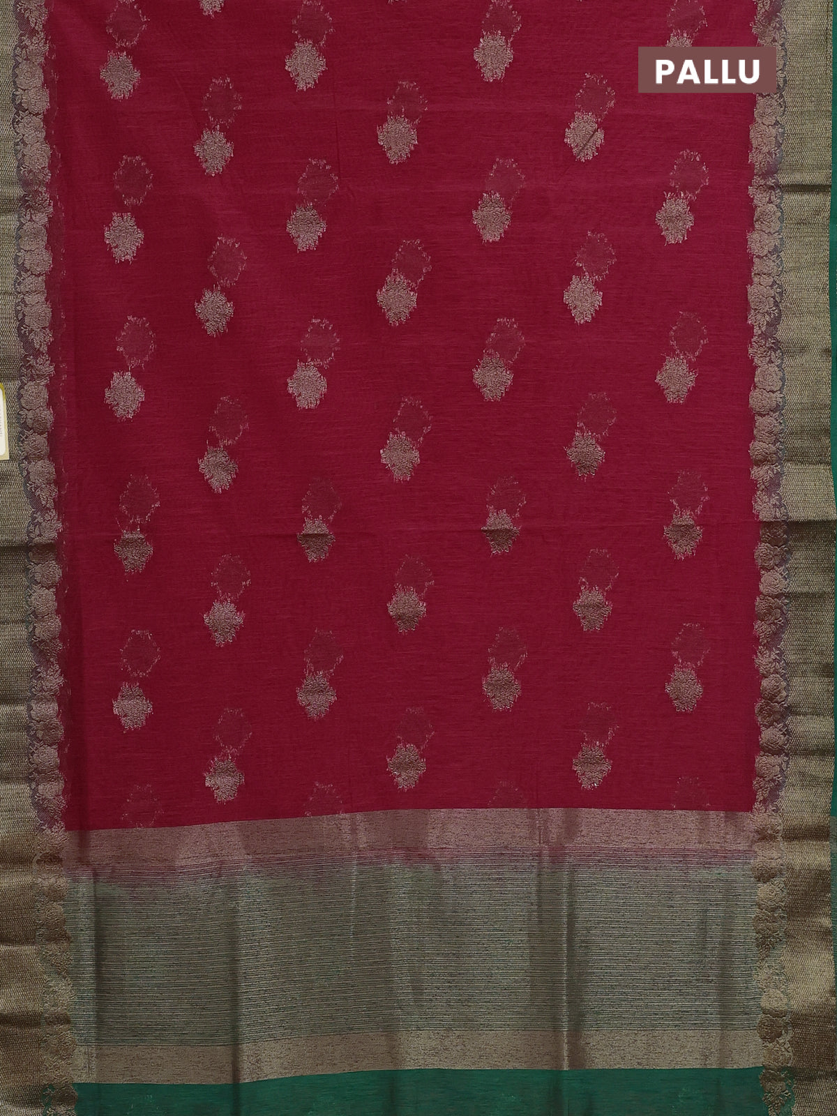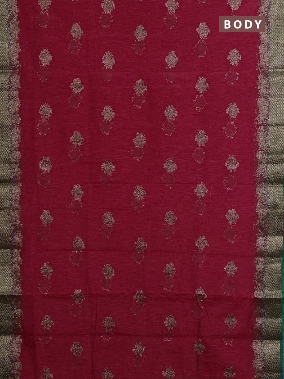 Banarasi semi matka saree red and green with thread & zari woven buttas and banarastyle border