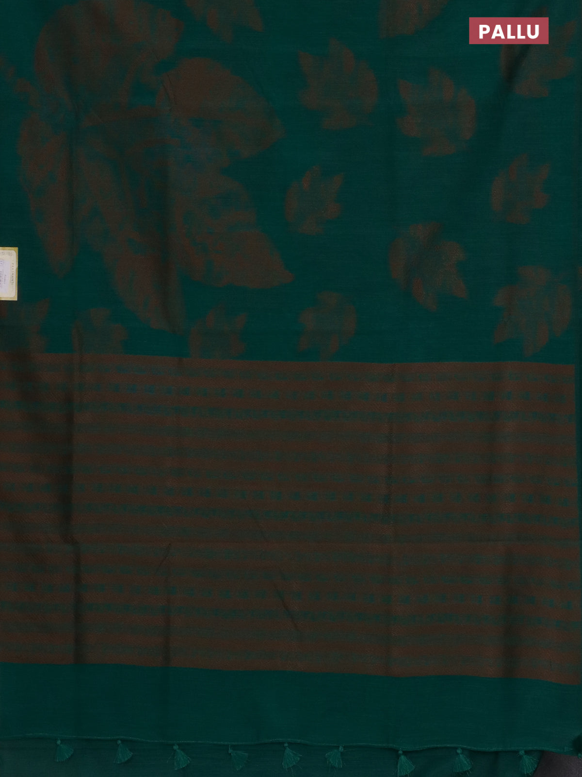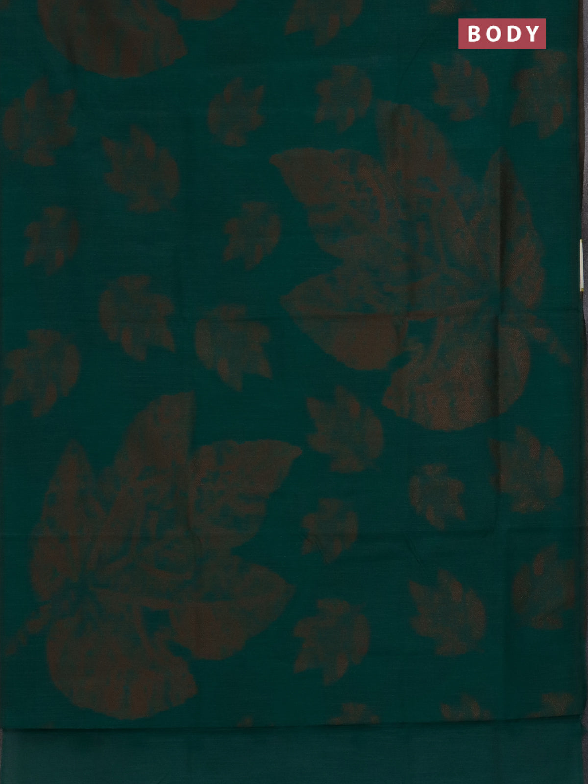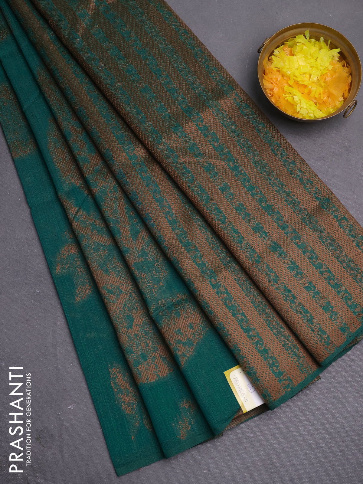 Banarasi semi matka saree teal green with allover thread woven leaf butta weaves in borderless style