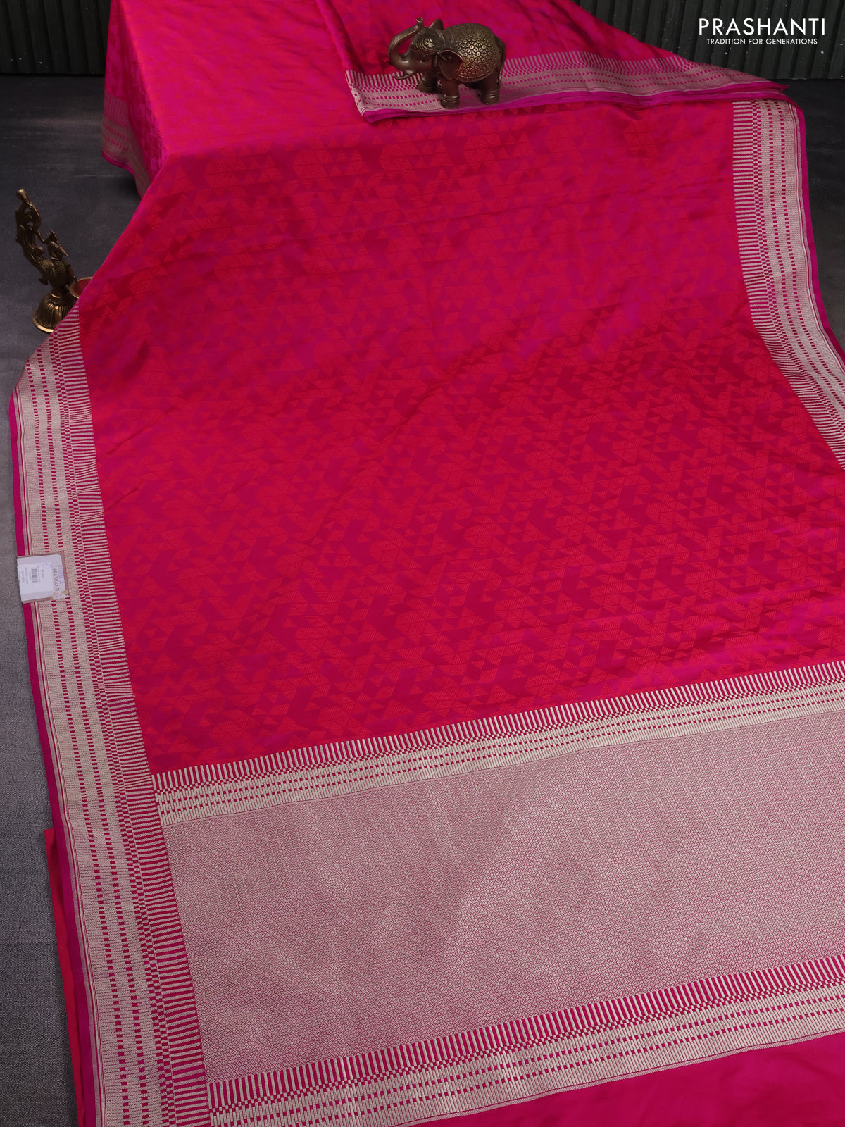 Banarasi semi mushru silk saree pink with allover self emboss and zari woven border