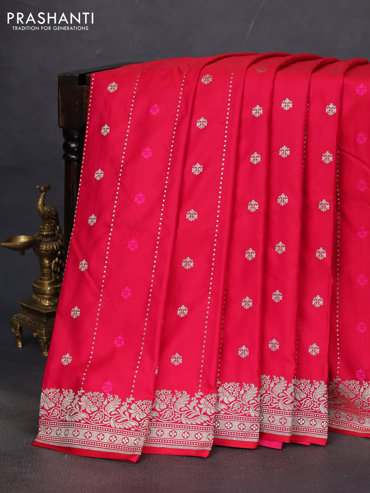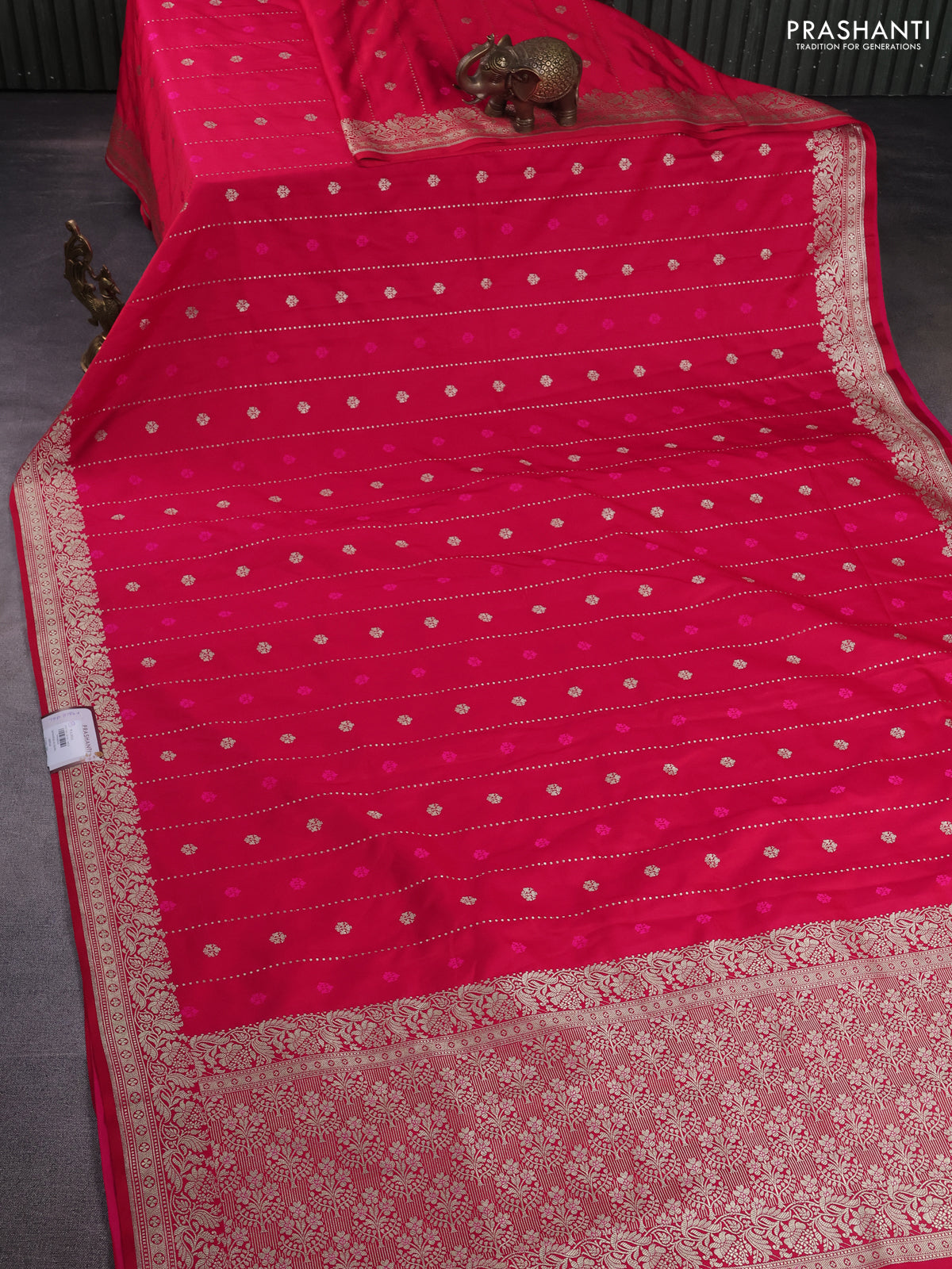 Banarasi semi mushru silk saree reddish pink with thread & zari woven buttas and zari woven border