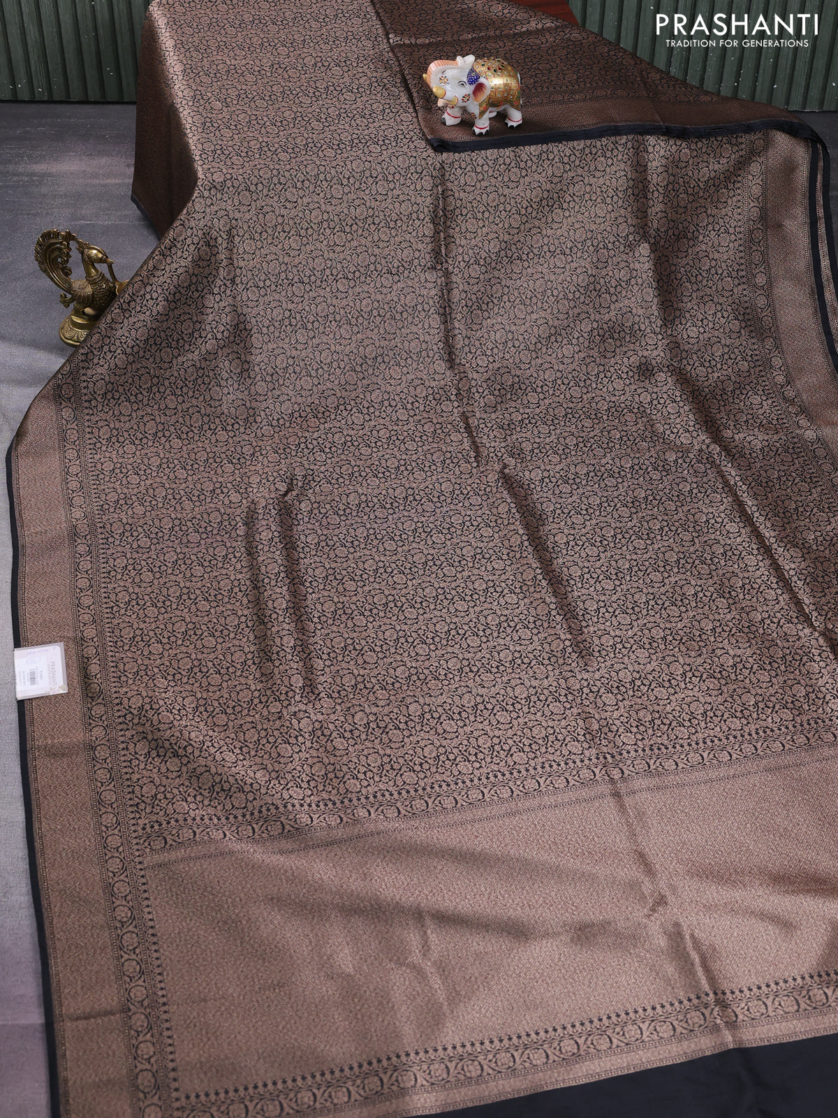 Banarasi semi silk saree black with allover thread & zari weaves and woven border