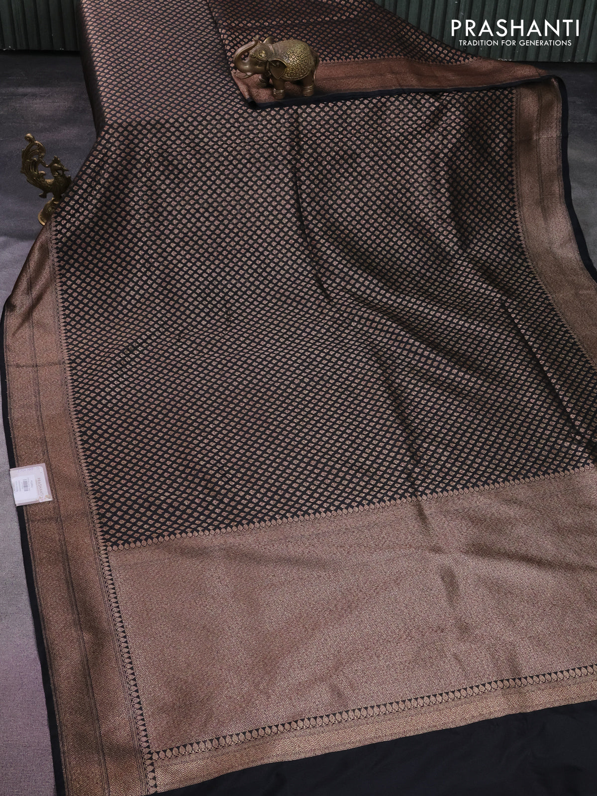 Banarasi semi silk saree black with allover thread & zari weaves and woven border