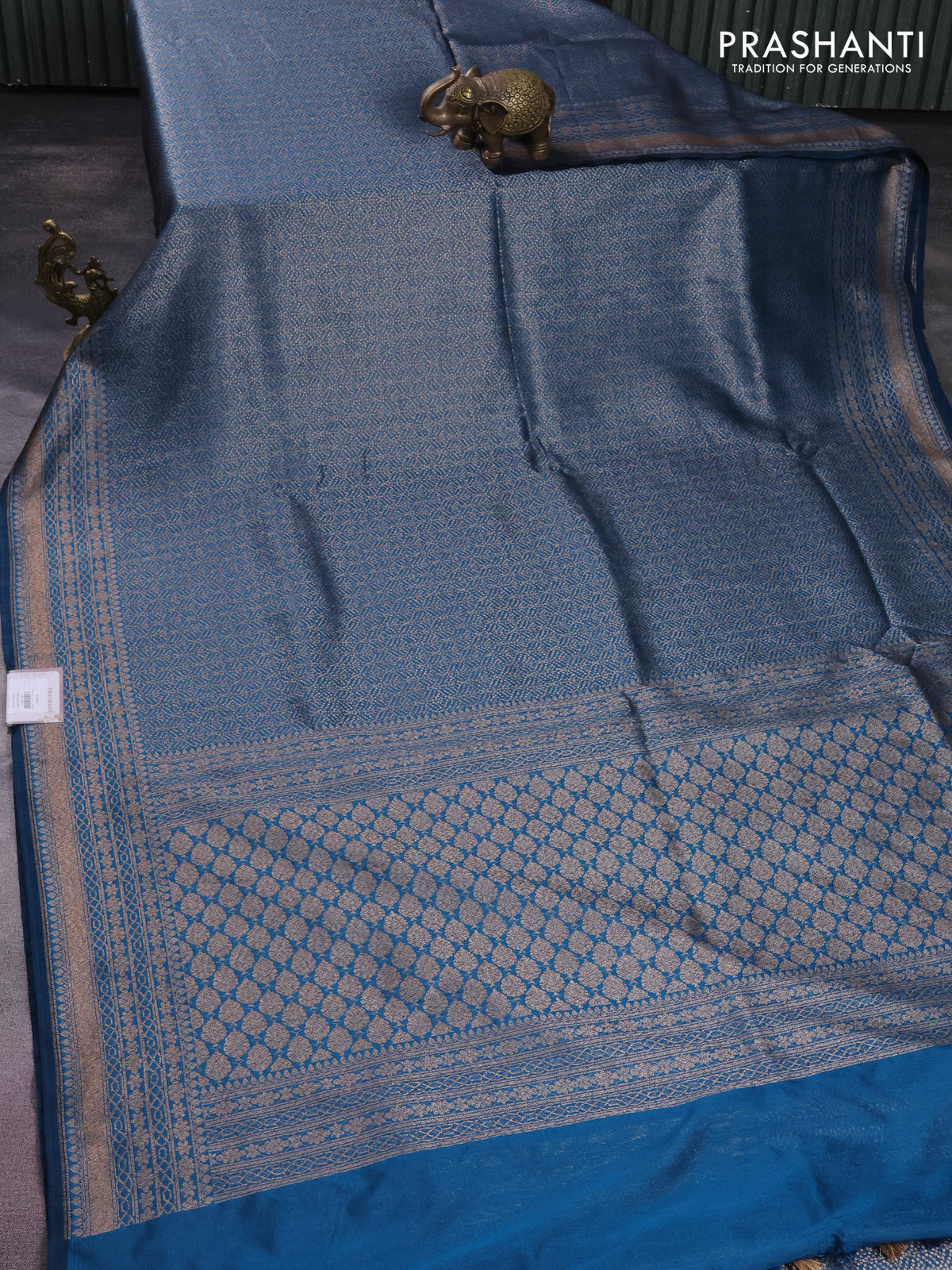 Banarasi semi silk saree cs blue with allover thread & zari weaves and woven border