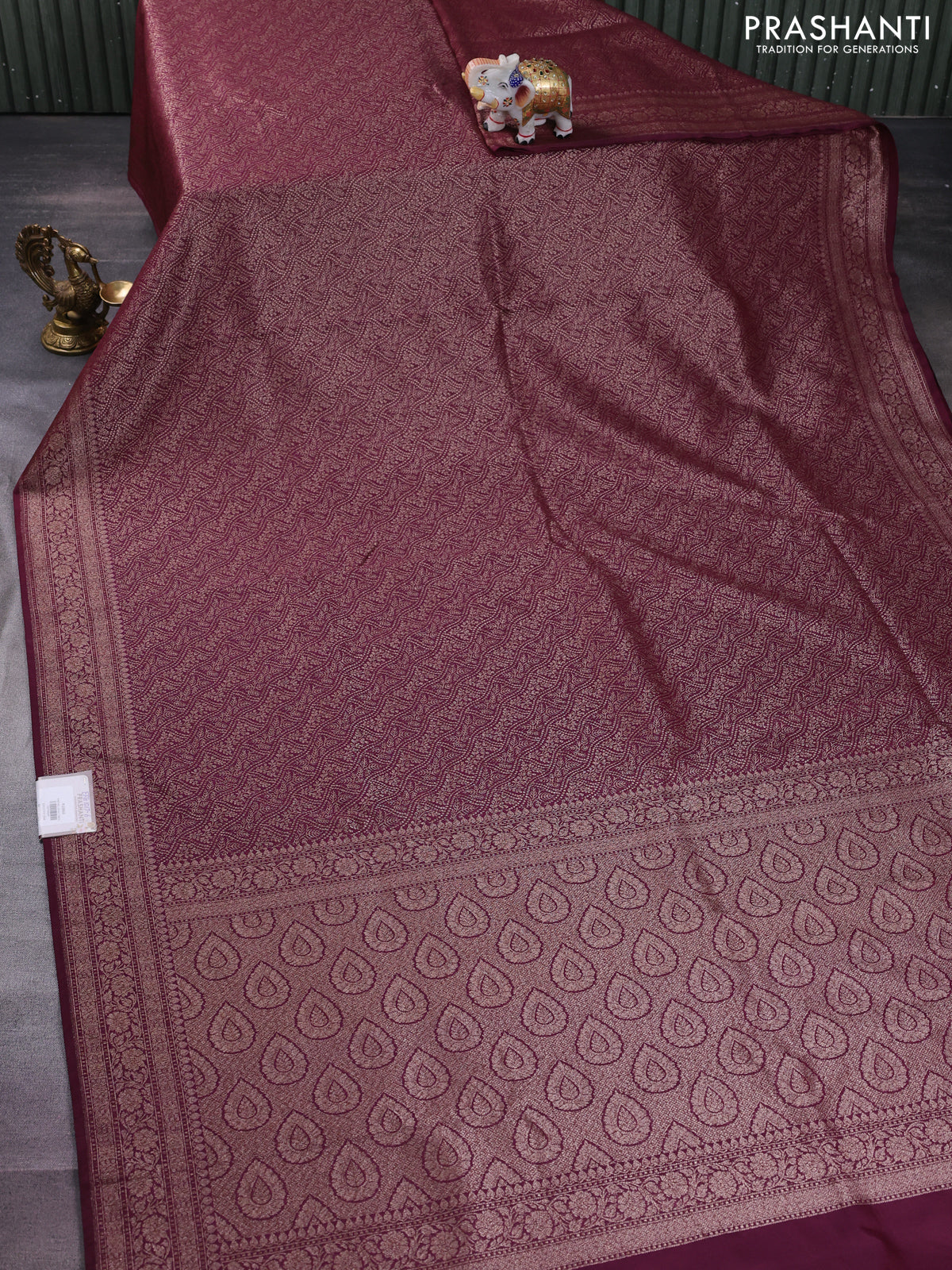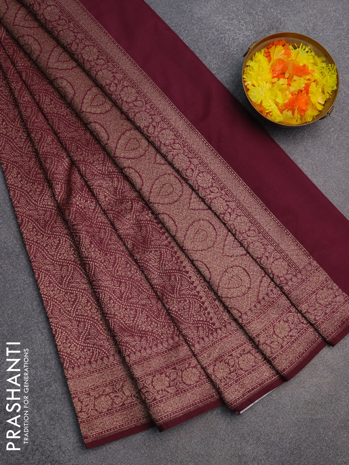 Banarasi semi silk saree deep maroon with allover thread & zari weaves and woven border