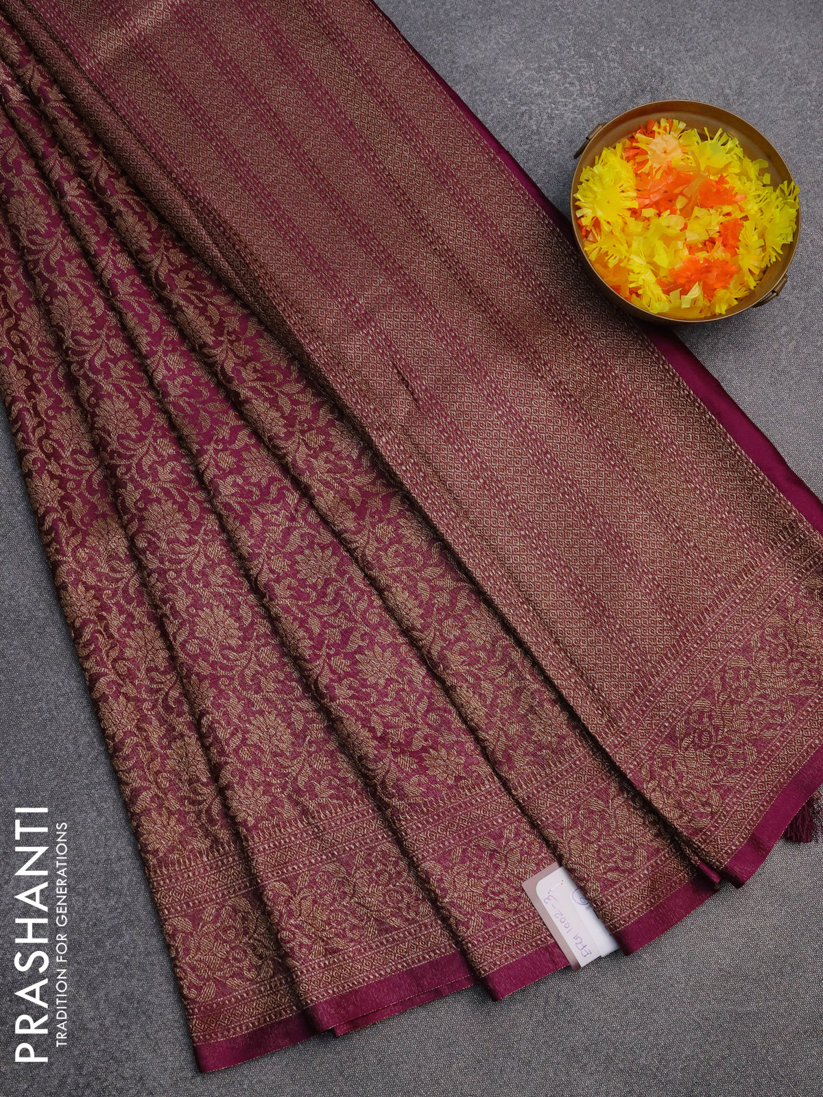 Banarasi semi silk saree deep purple with allover thread & zari woven butta weaves and woven border