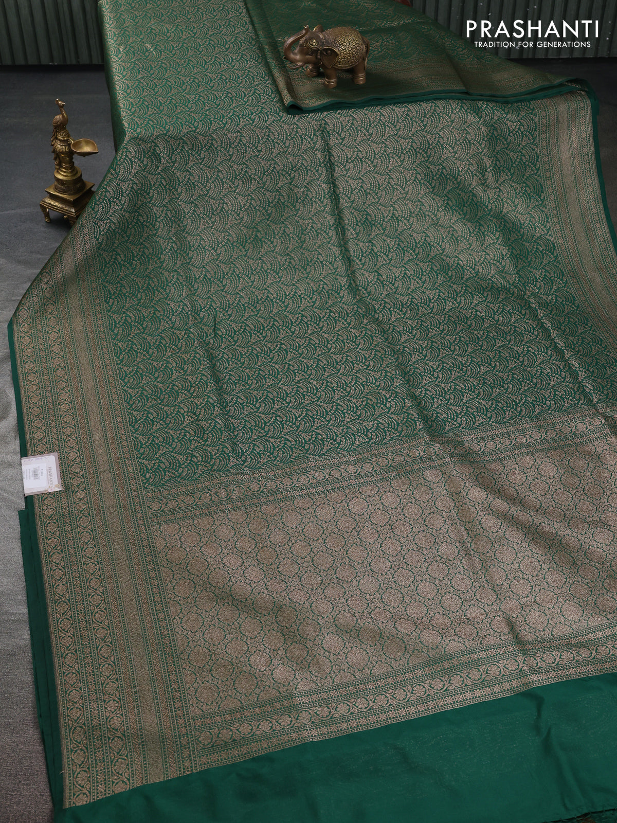Banarasi semi silk saree green with allover thread & zari weaves and woven border