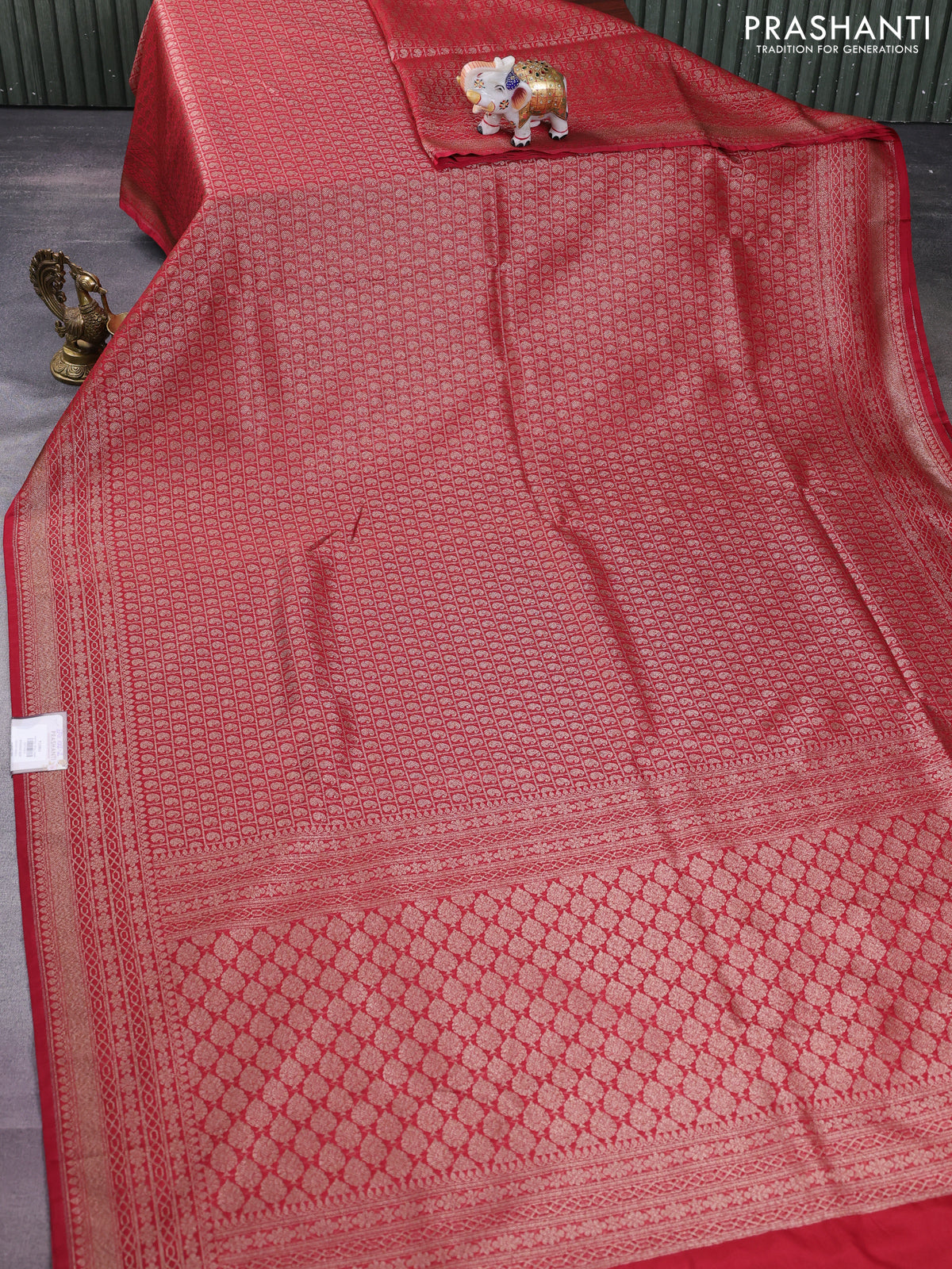 Banarasi semi silk saree maroon with allover thread & zari weaves and woven border