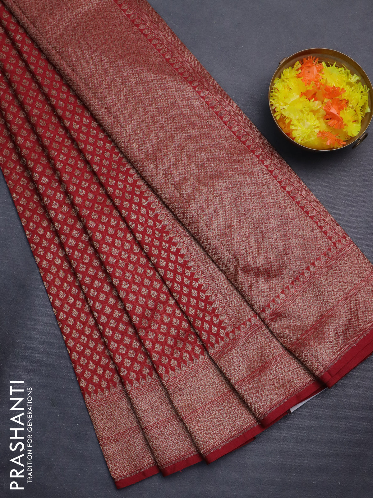 Banarasi semi silk saree maroon with allover thread & zari weaves and woven border