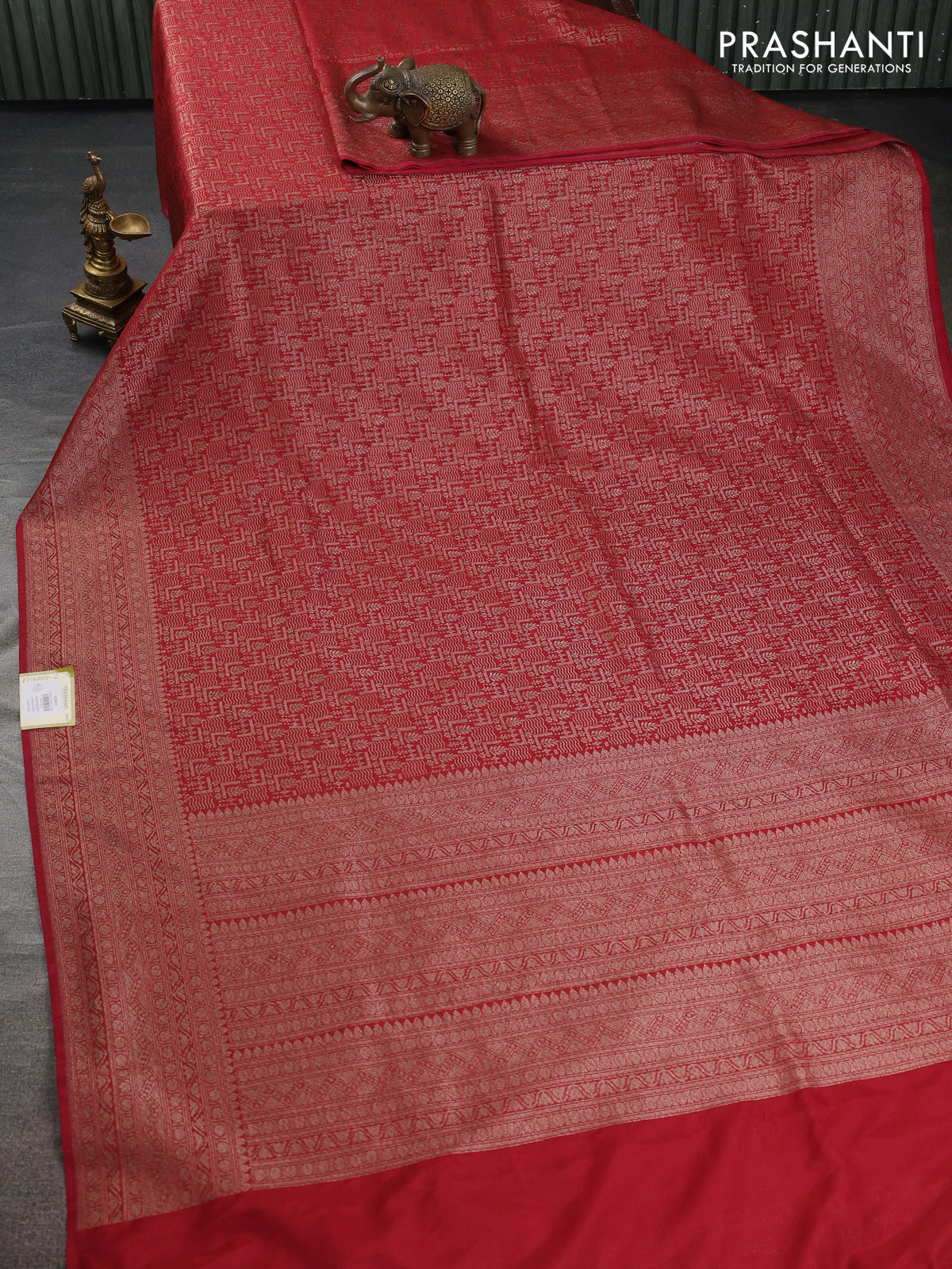 Banarasi semi silk saree maroon with allover thread & zari weaves and woven border