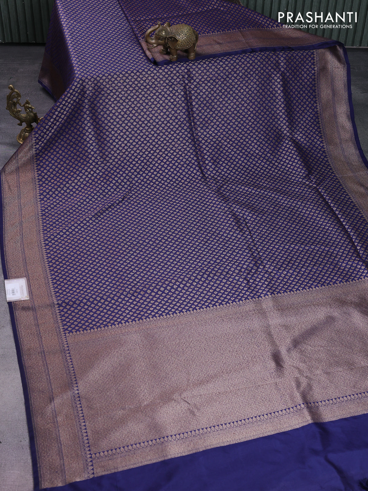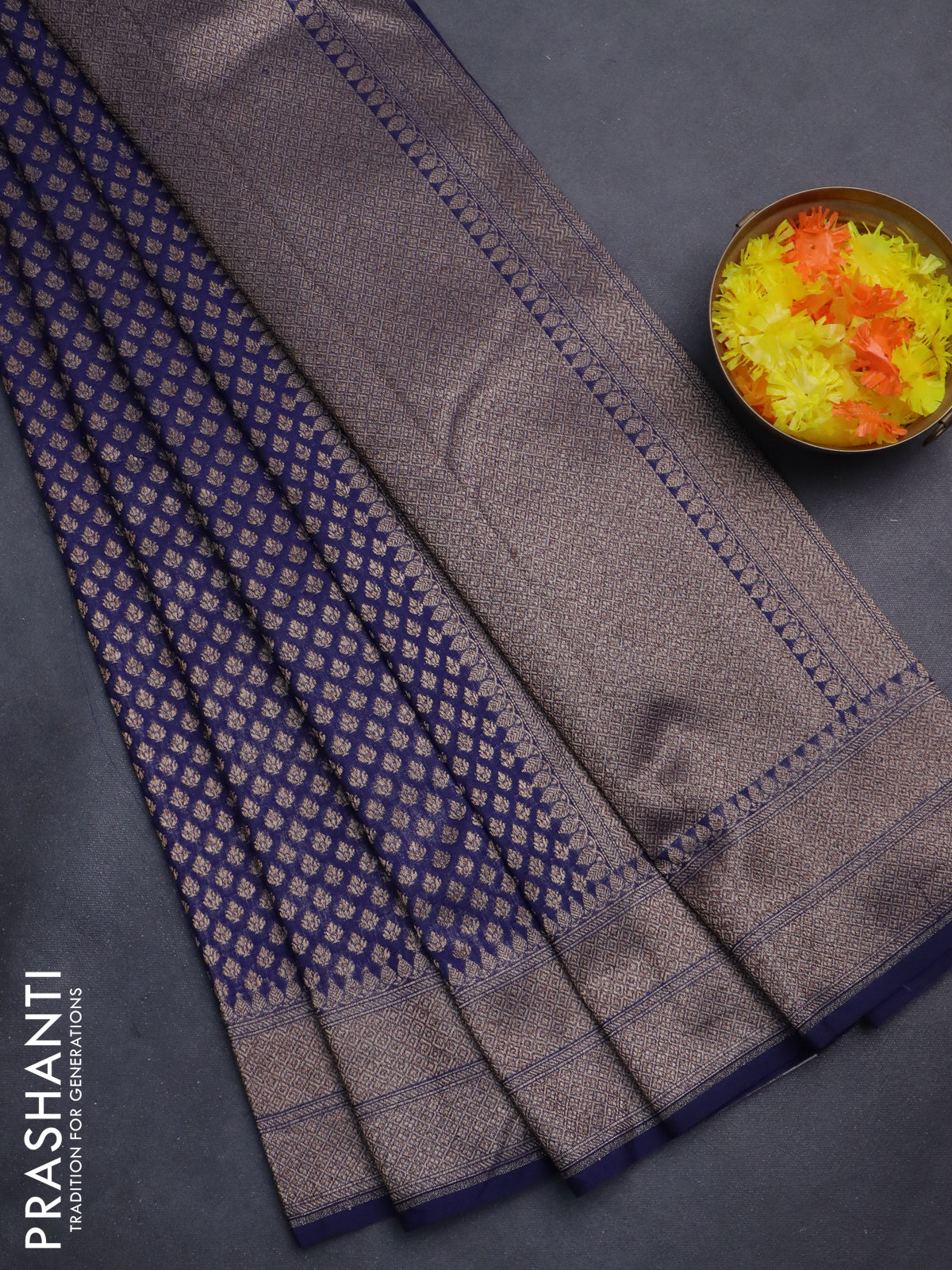 Banarasi semi silk saree navy blue with allover thread & zari weaves and woven border