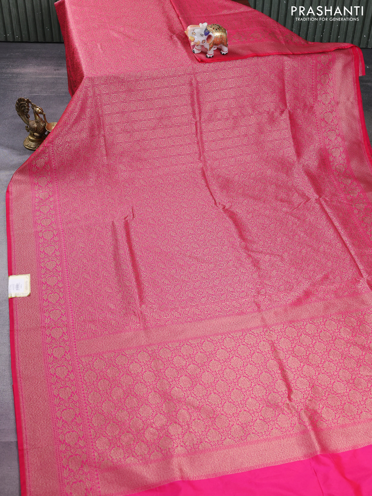 Banarasi semi silk saree pink with allover thread & zari weaves and woven border