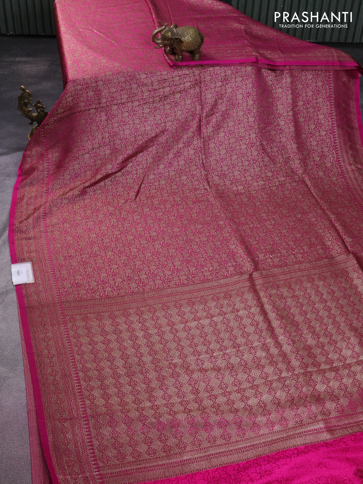 Banarasi semi silk saree pink with allover thread & zari weaves and woven border