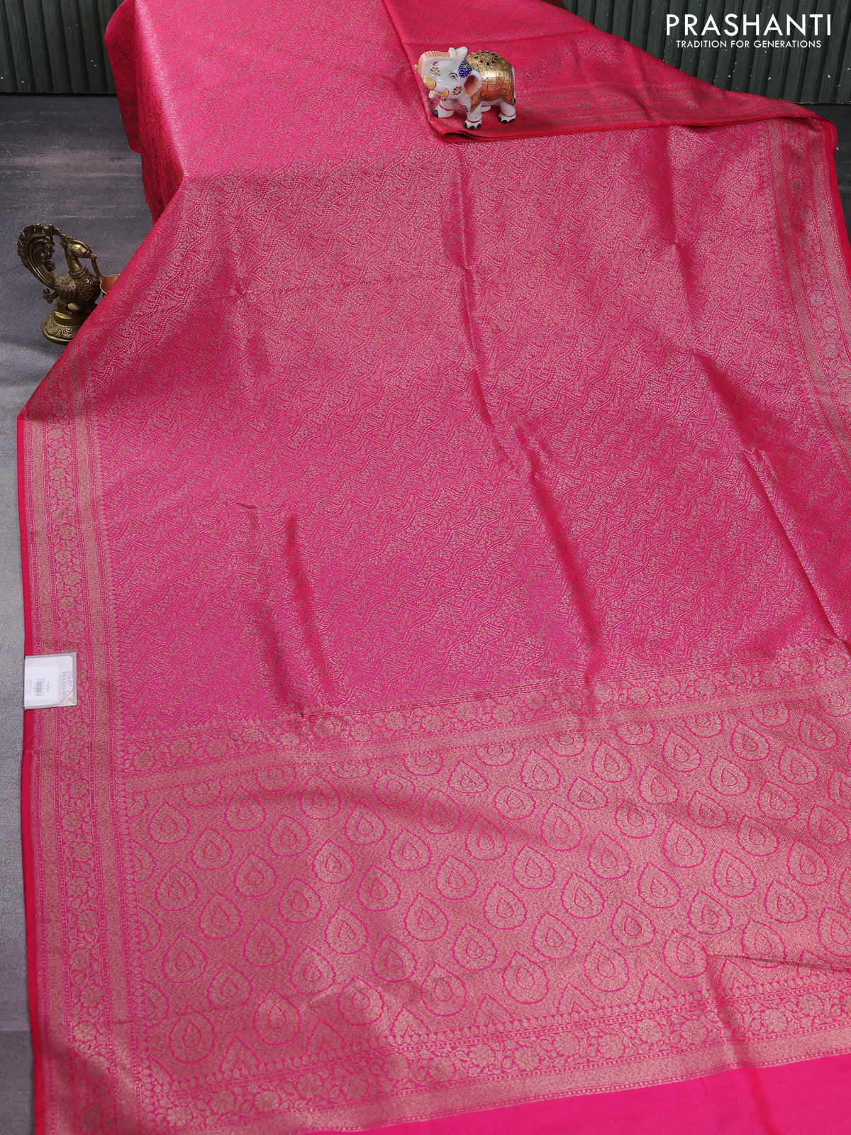Banarasi semi silk saree pink with allover thread & zari weaves and woven border