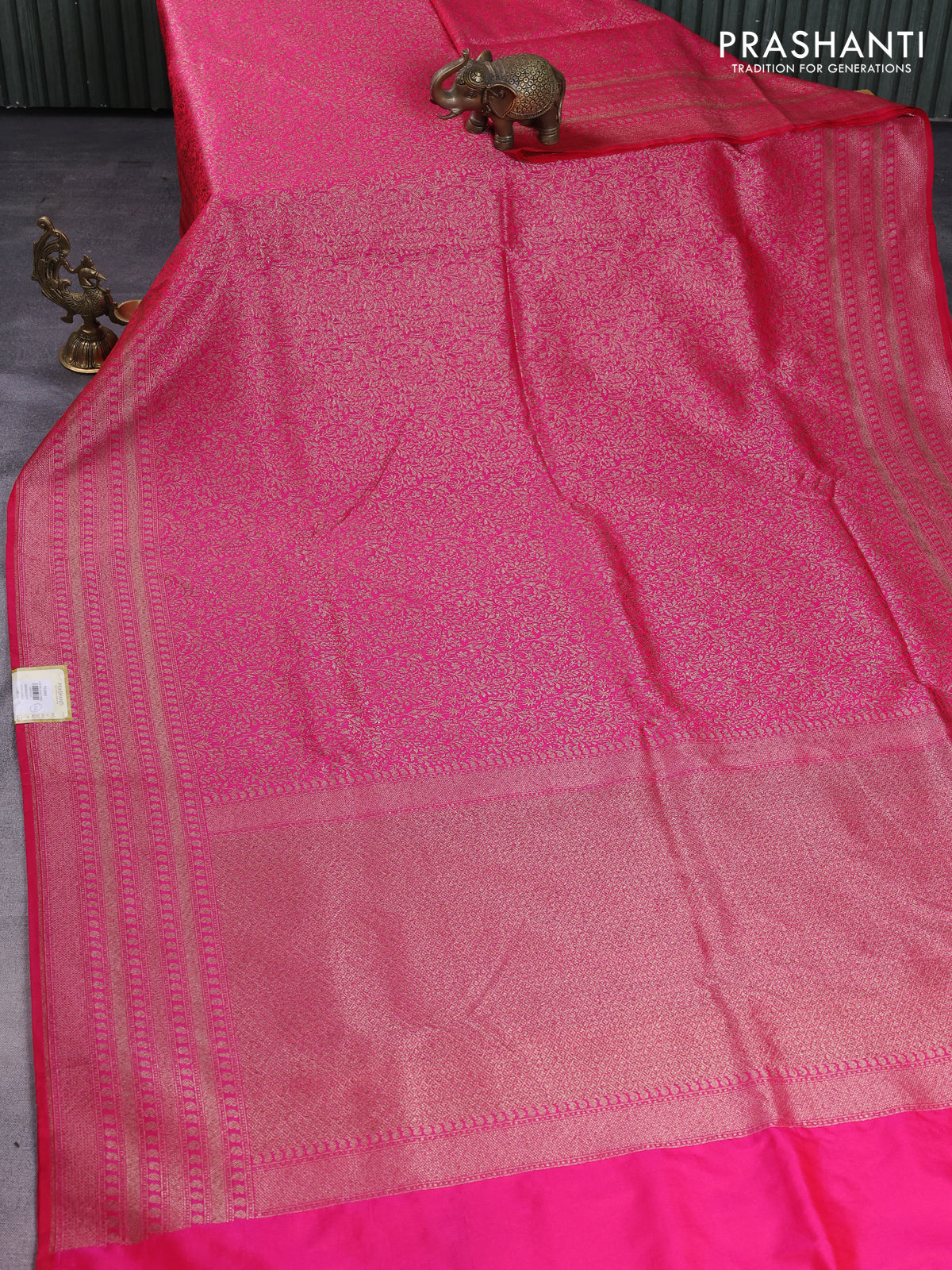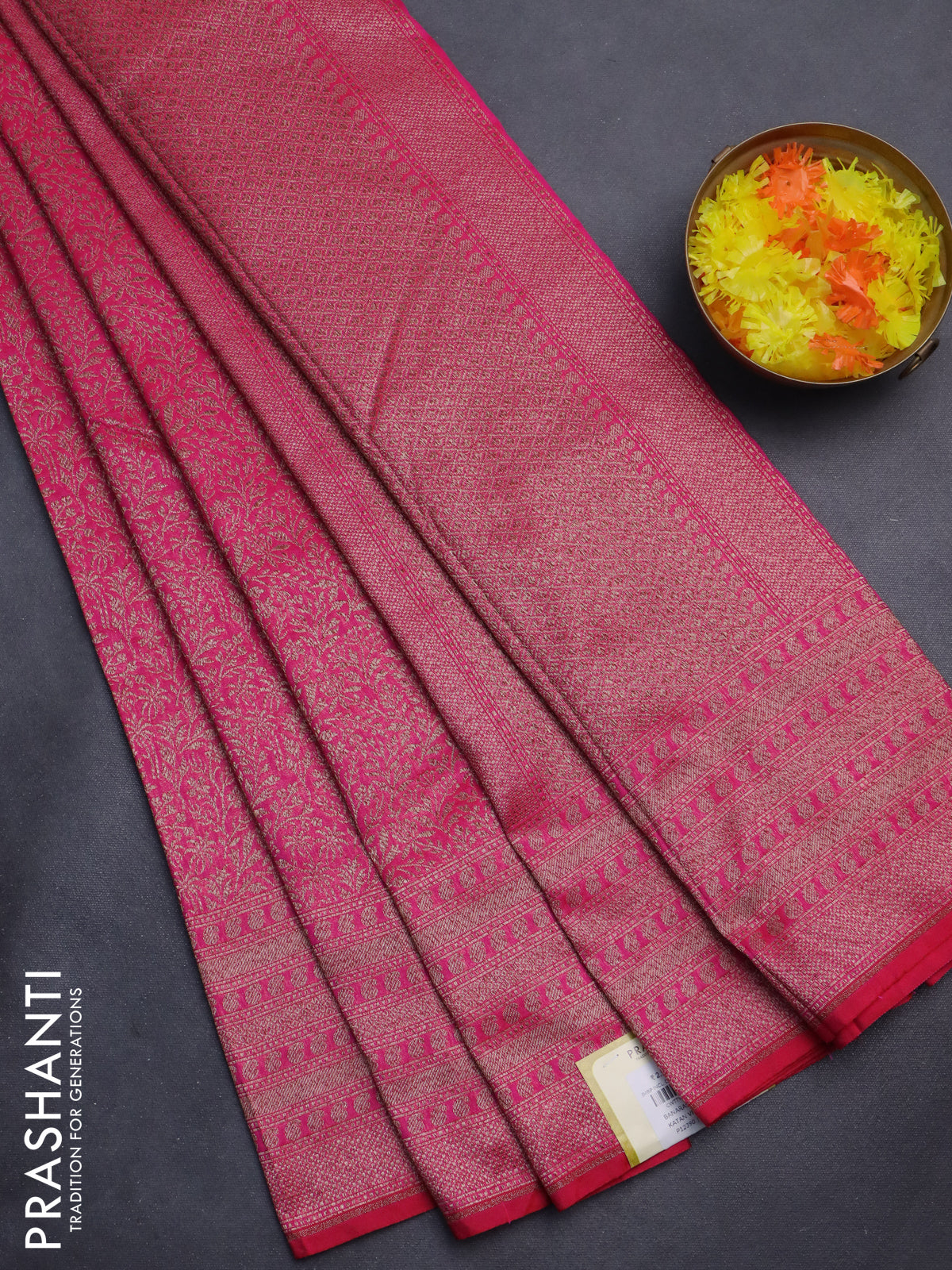 Banarasi semi silk saree pink with allover thread & zari weaves and woven border