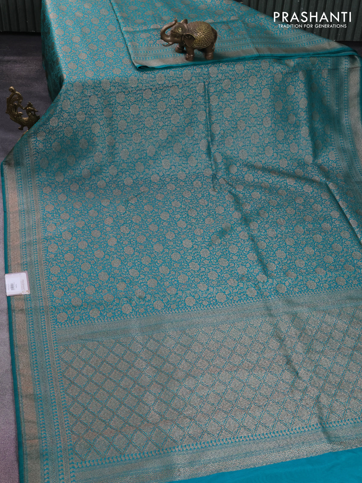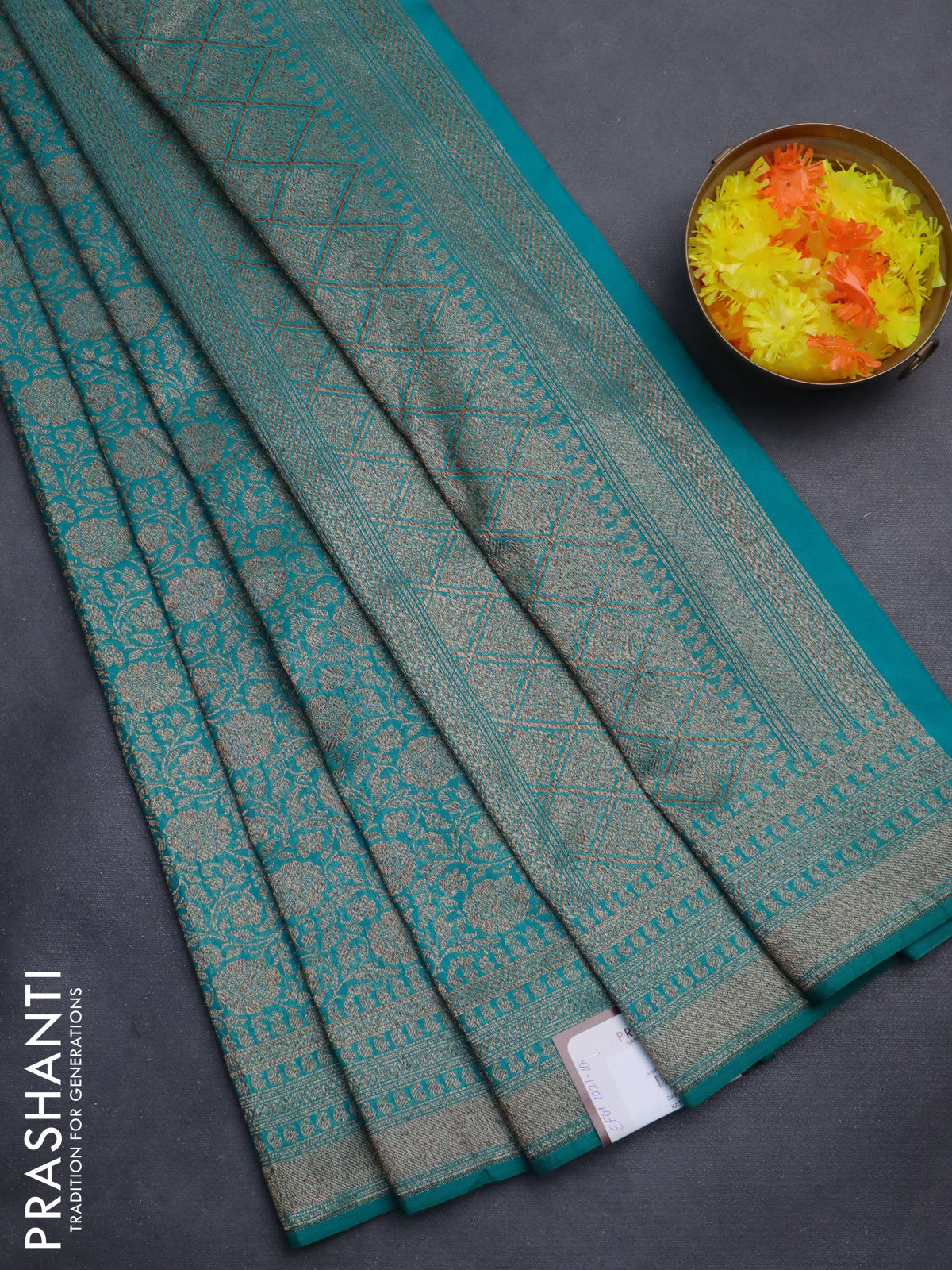 Banarasi semi silk saree teal green with allover thread & zari weaves and woven border