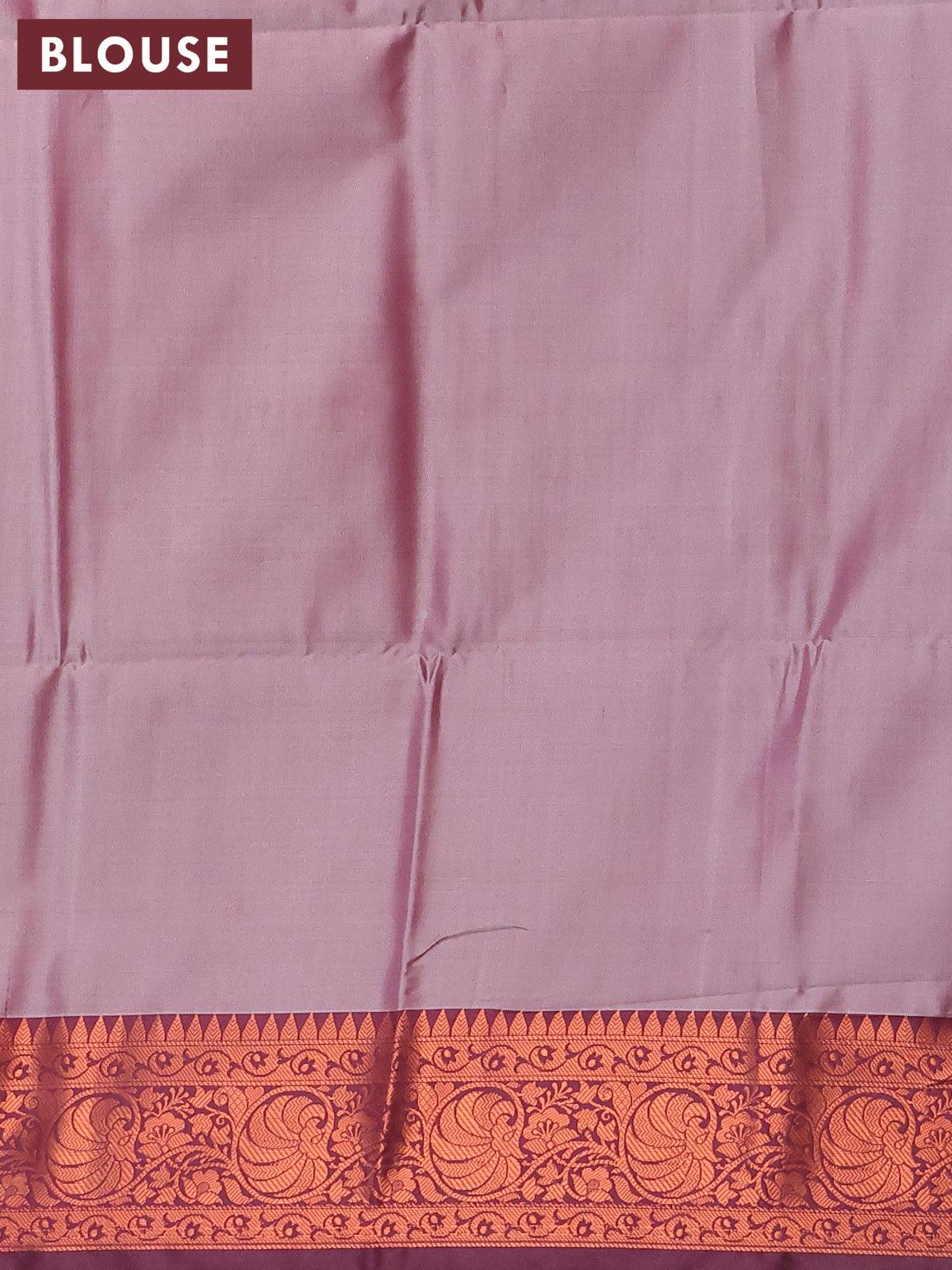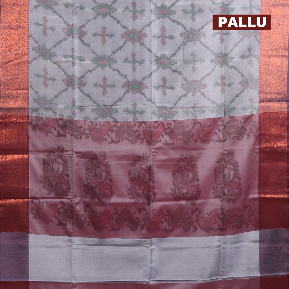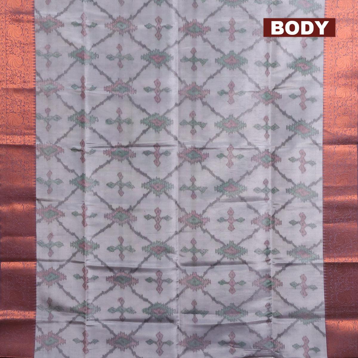 Banarasi semi tussar saree grey and purple with allover ikat weaves and copper zari woven border
