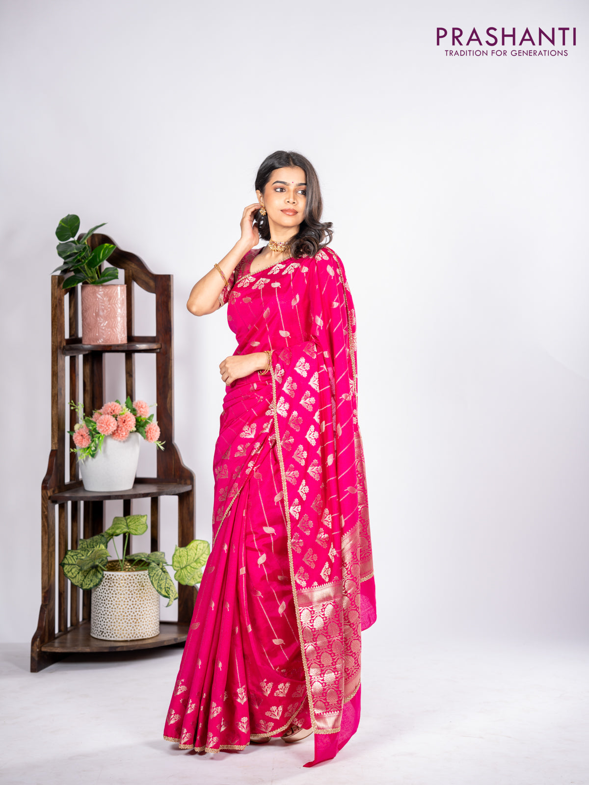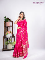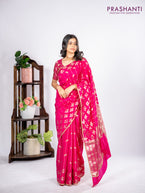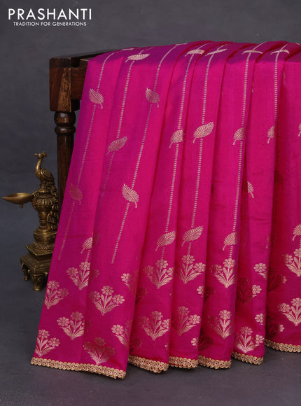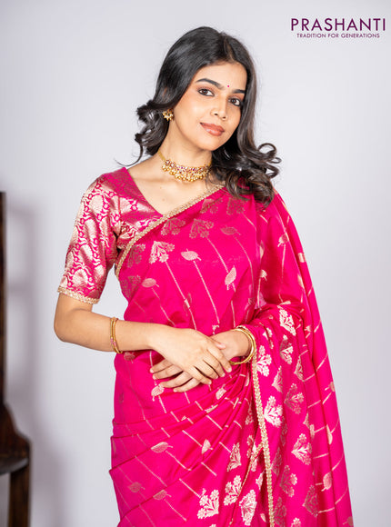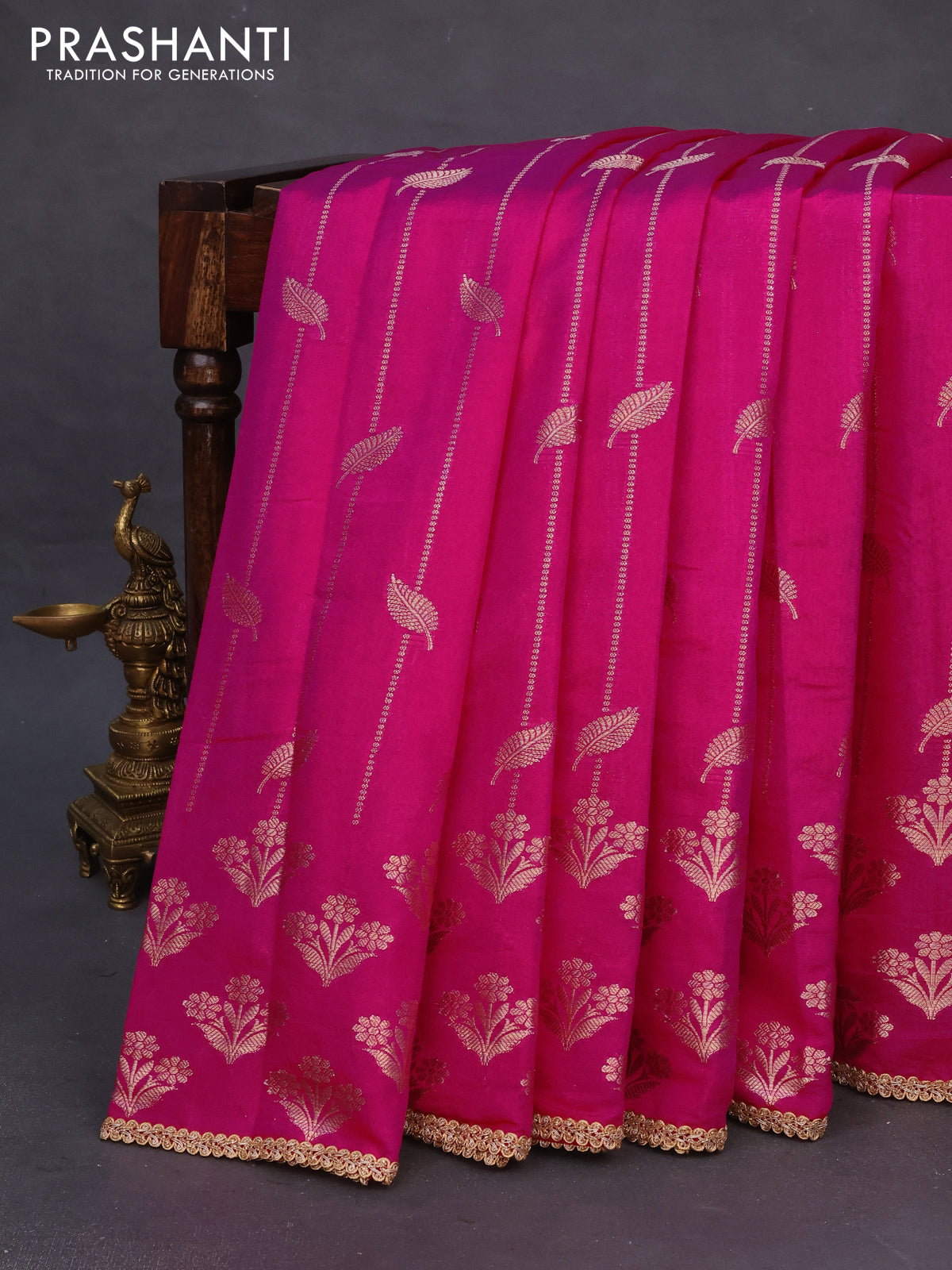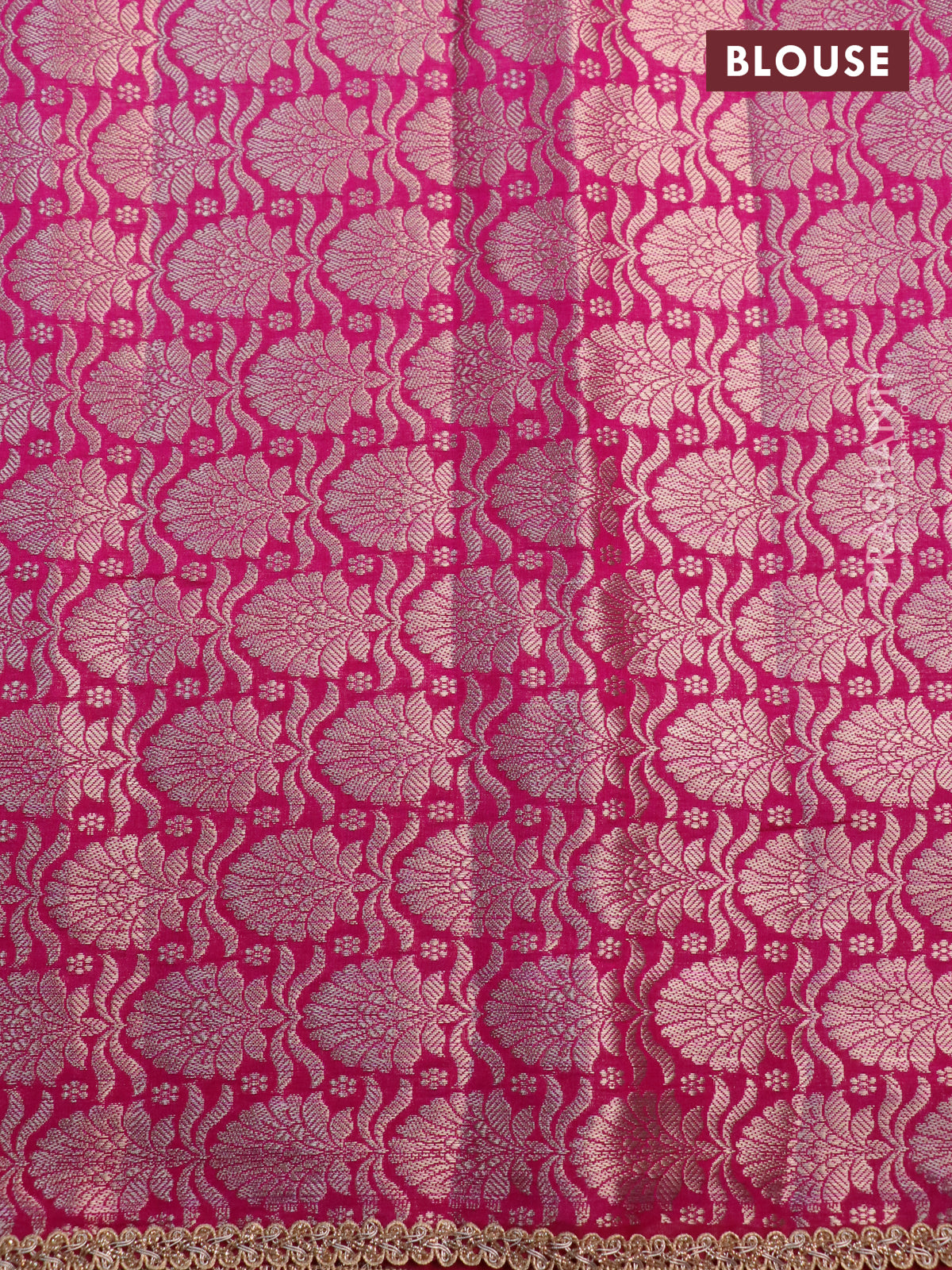 Banarasi semi tussar saree pink with allover zari weaves and lace work border
