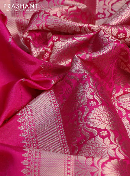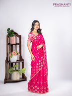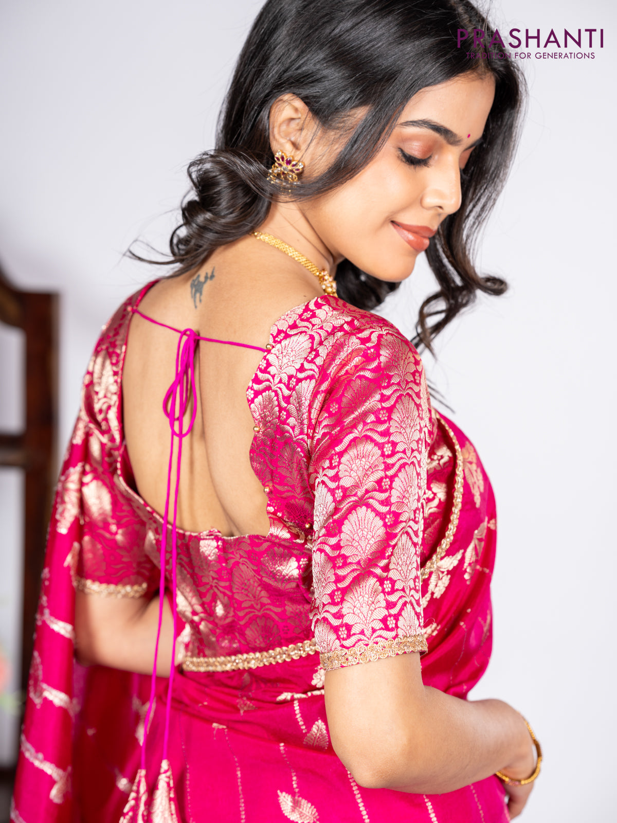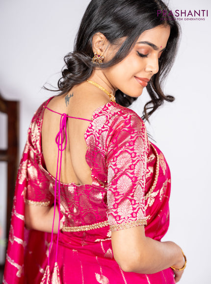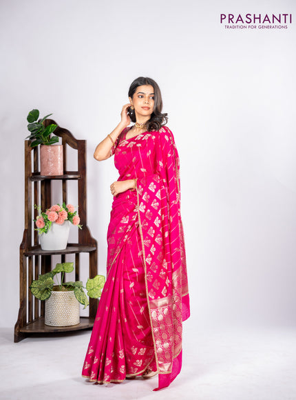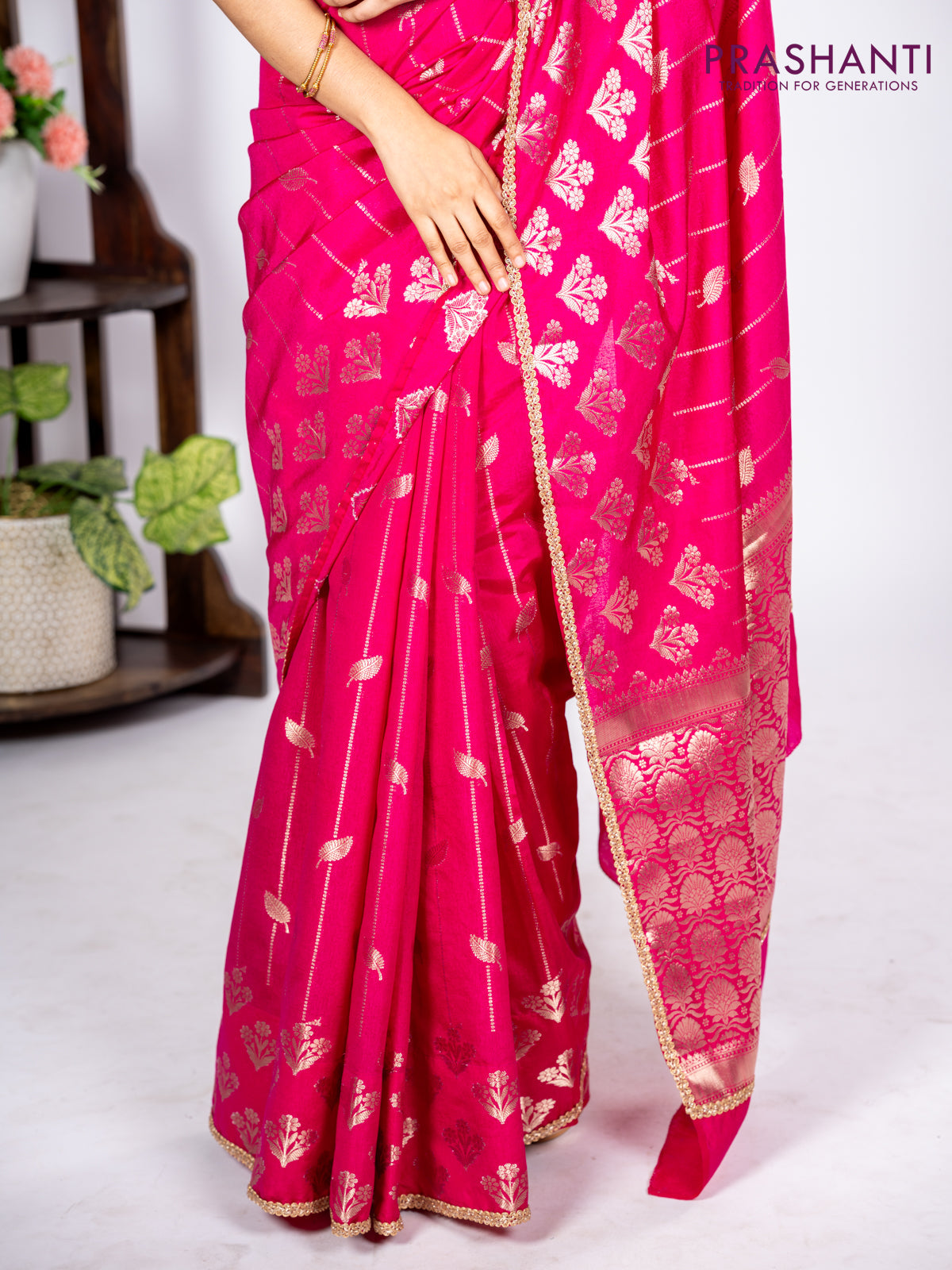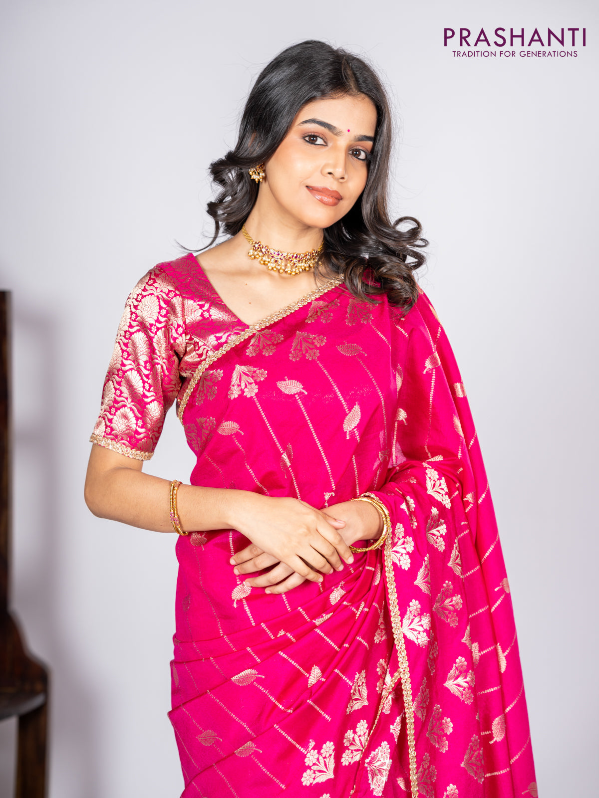 Banarasi semi tussar saree pink with allover zari weaves and lace work border