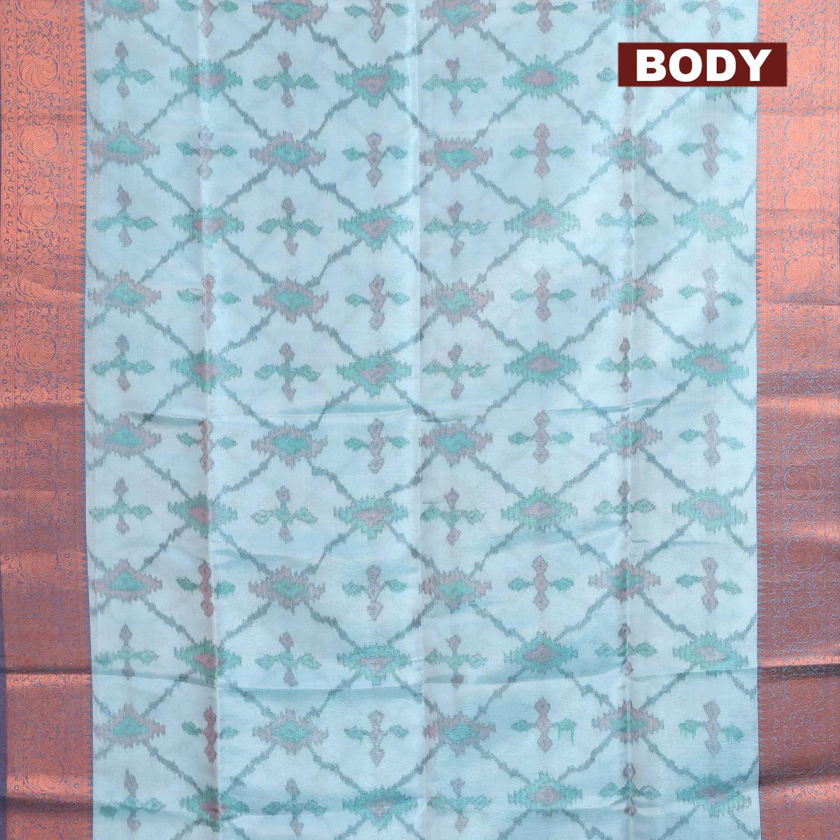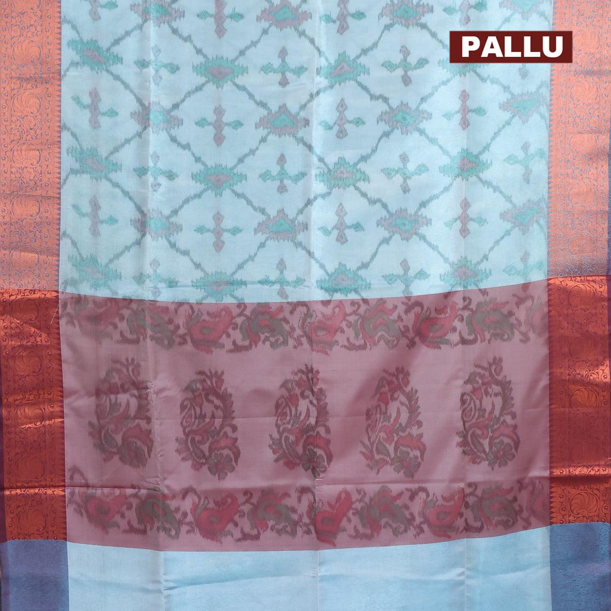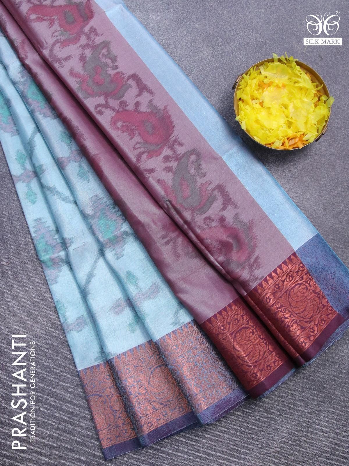 Banarasi semi tussar saree teal blue and wine shade with allover ikat weaves and copper zari woven border